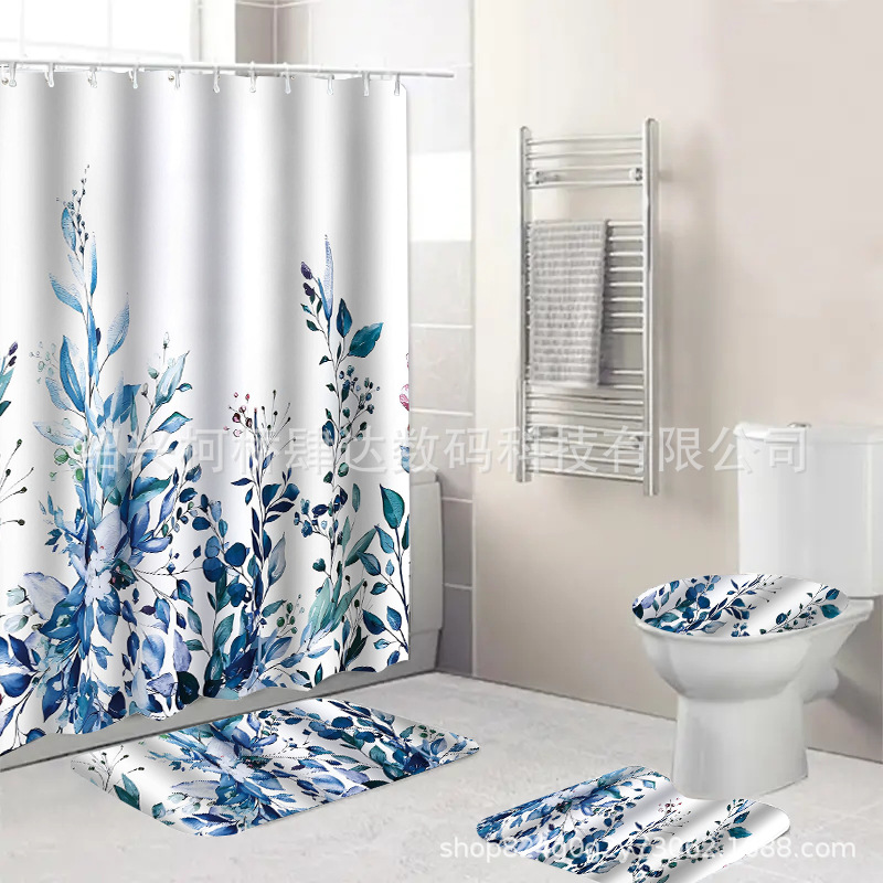 Цифровой занавеска для душа трансграничная растение цветок водонепроницаемый полиэстер ванная комната четыре части влажного и сухого разделения влагостойкий плесени-доказательство изоляции занавес