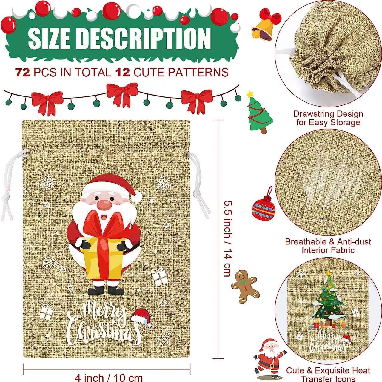 Набор рождественских мешочков на завязках для конфет, оптом, маленькие тканевые мешочки на завязках, рождественские мешочки на завязках