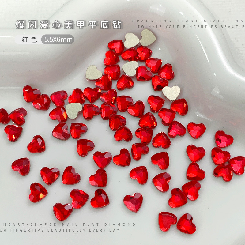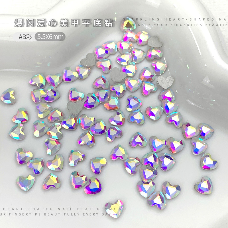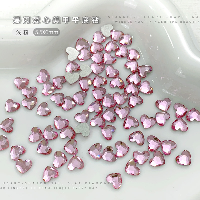 Цветная любовь ногтей бриллиант с плоским дном белое персиковое сердце стразы k9 стеклянные украшения для ногтей на день Святого Валентина оптом