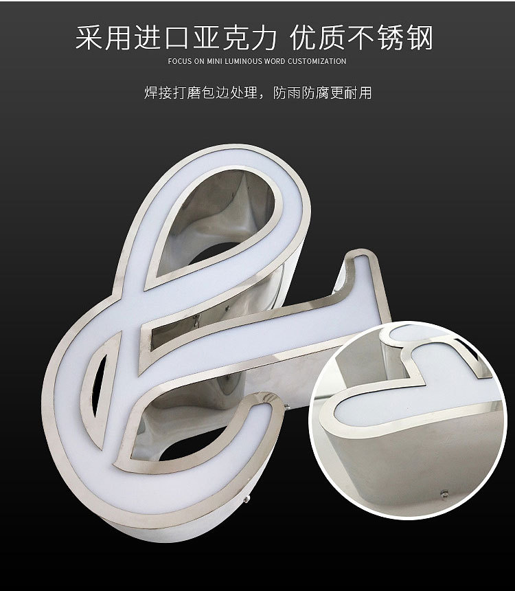Дверной знак, кромка из нержавеющей стали, светящиеся символы, светодиодный рекламный щит, светящиеся символы, акриловые светящиеся символы спереди и сзади, по индивидуальному заказу
