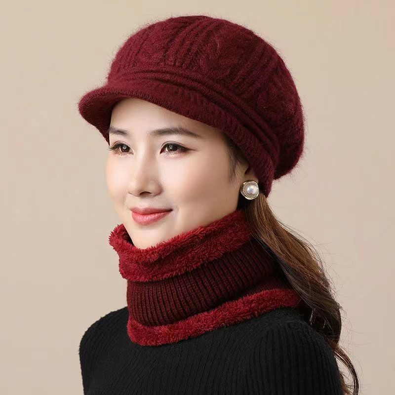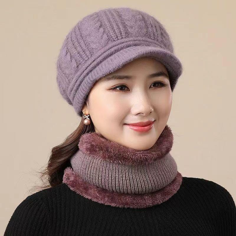 Кашемировая шапка-шарф для женщин среднего и старшего возраста, теплая вязаная шапка для пожилых женщин, кашемировая теплая шапка.