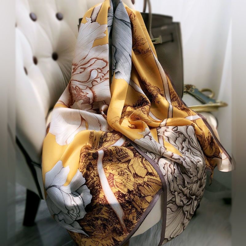 Новый длинный шарф парчи с цветком гардении, шарф-шаль, Женская декоративная универсальная шаль, солнцезащитный крем, пляжное полотенце, оптовая продажа
