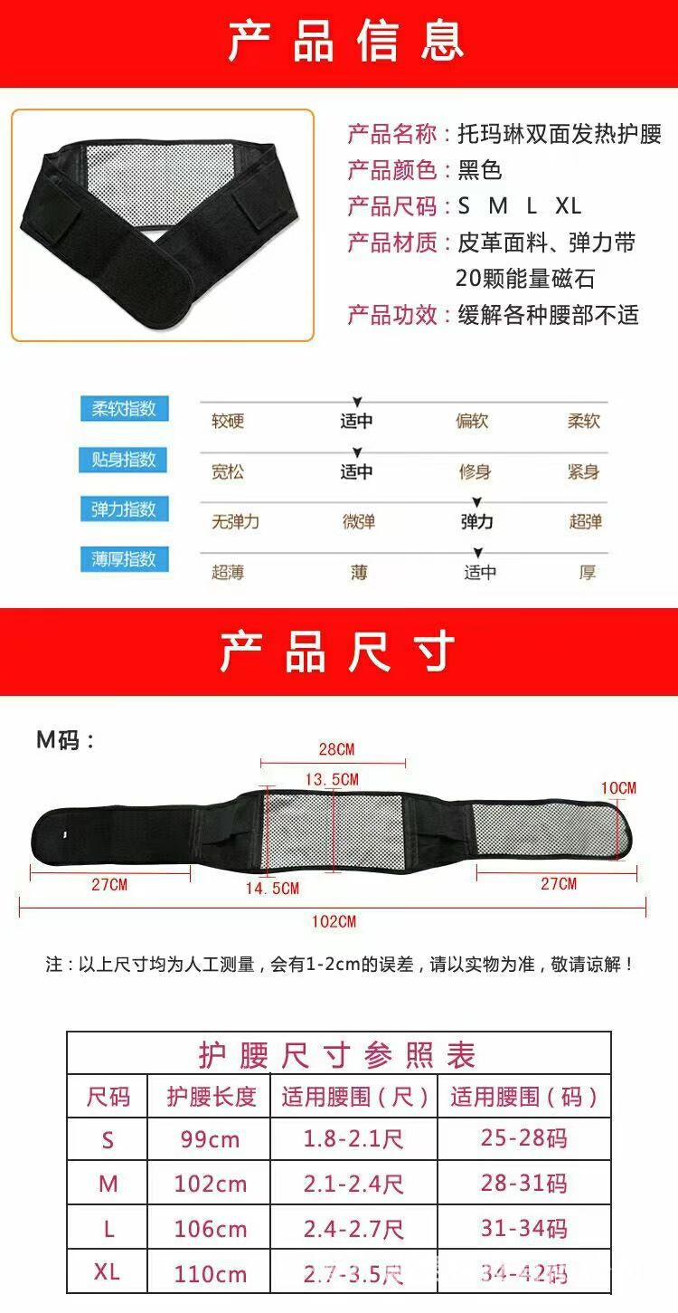 Мужской и женский турмалиновый двусторонний самонагревающийся массажный пояс с магнитом для поддержки талии, самонагревающийся массажный пояс