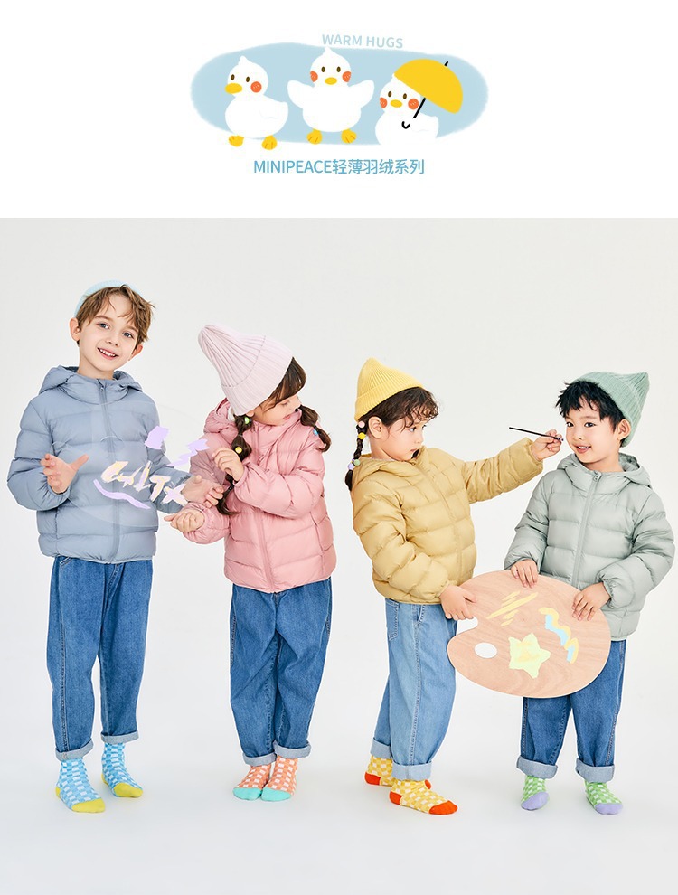 Детская легкая шелковая одежда с перьями, детская одежда, зимняя новая мужская и женская шелковая короткая куртка с капюшоном на белом утином пуху