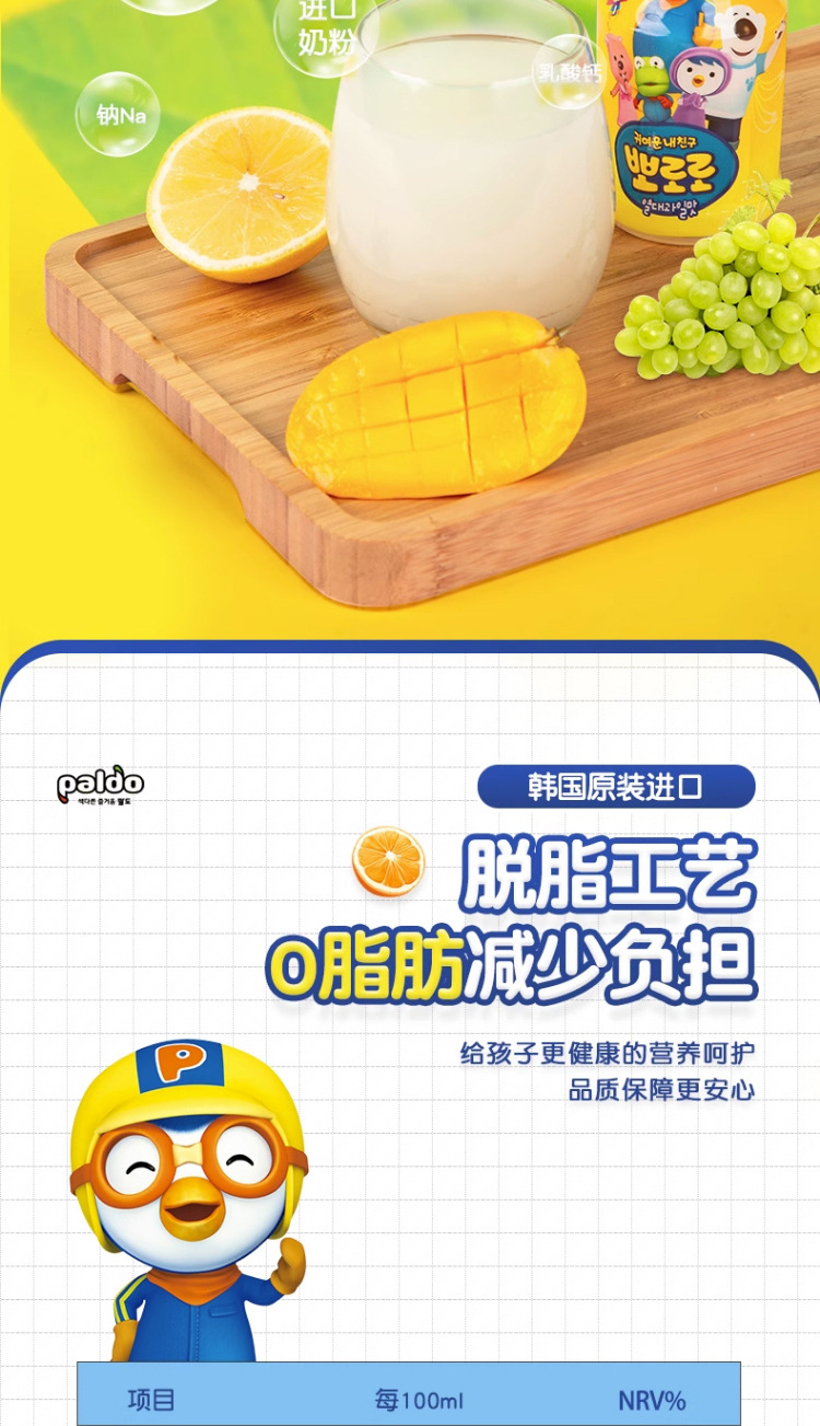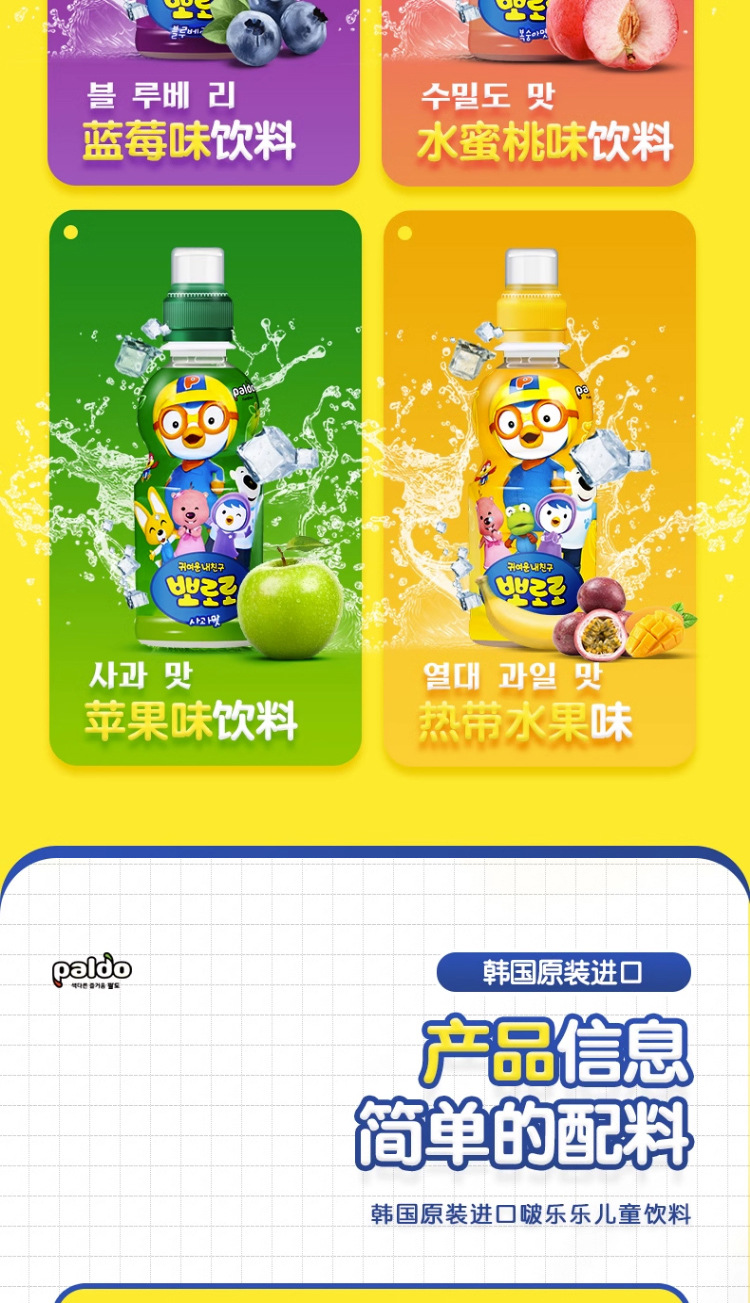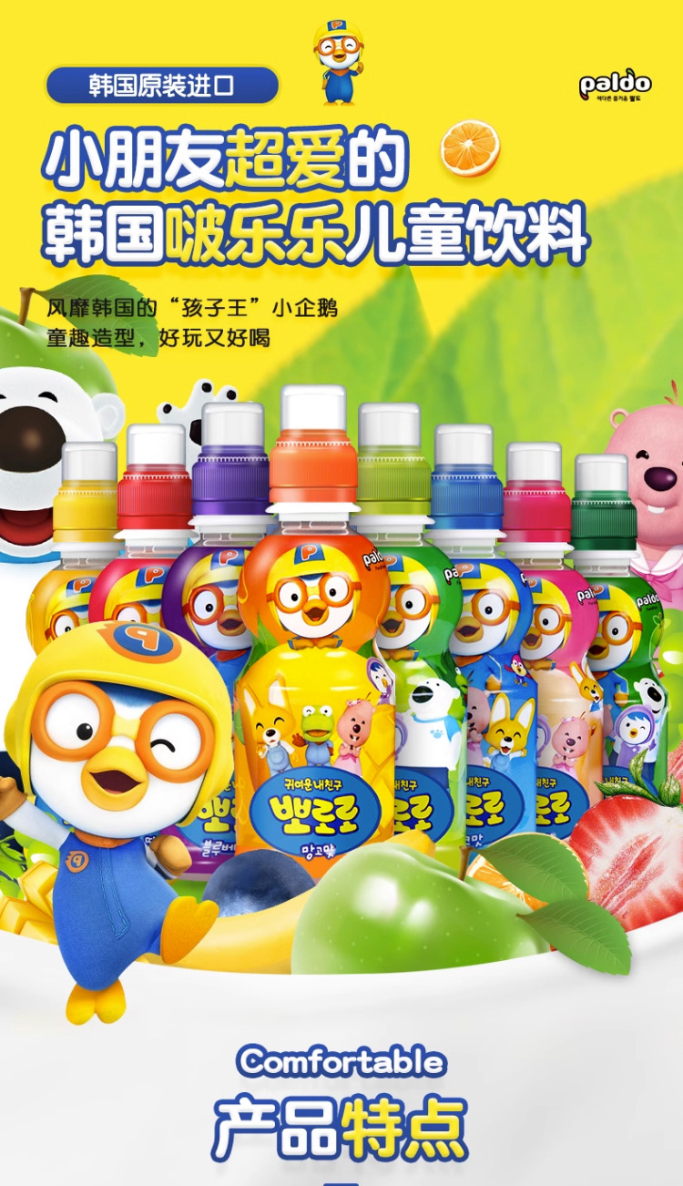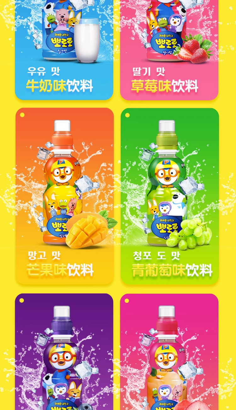 Корейский импортный детский соковый напиток Pororo, поп, клубника, виноград, молочный ароматизированный напиток