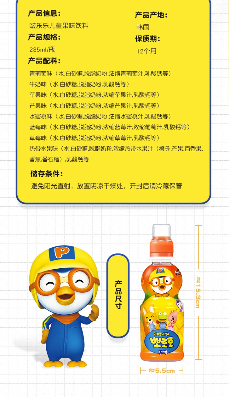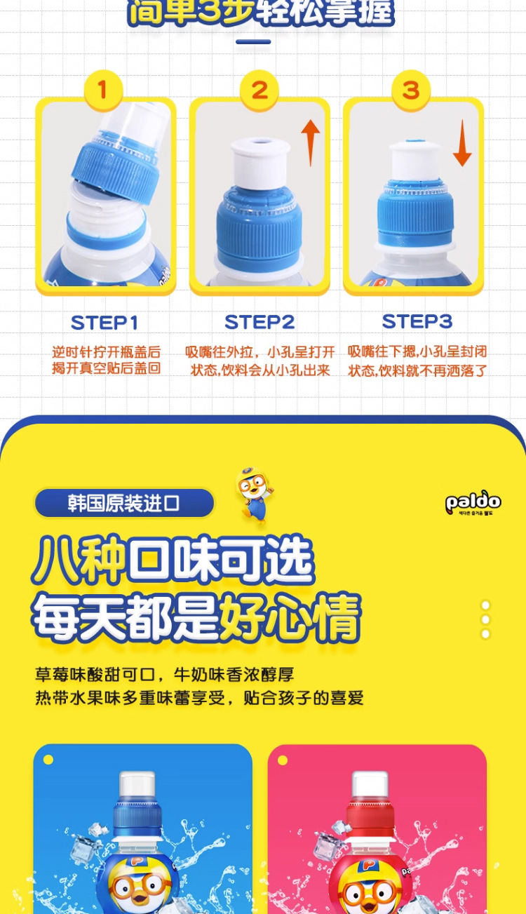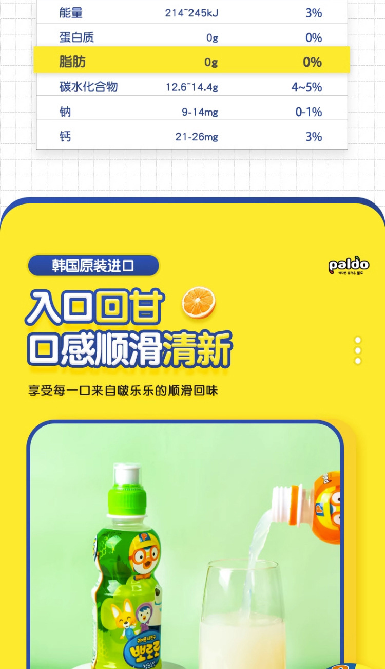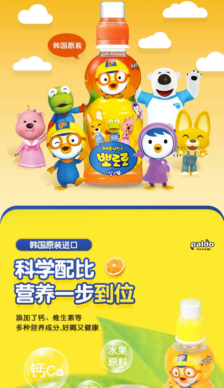 Корейский импортный детский соковый напиток Pororo, поп, клубника, виноград, молочный ароматизированный напиток