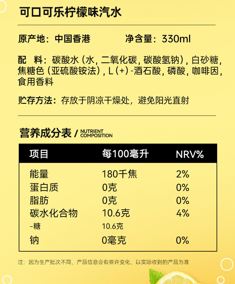 Гонконгская версия лимонной колы 330ml; Гонконгская версия Coca-Cola 330ml; Гонконгская версия Orange Fanta 330ml; Yuquan C газовый лимонный аромат 330ml; Yuquan Западный Помело 330ml; Нулевой сахар PLUS Cola 330ml; Макао версия лимонная кола 330мл