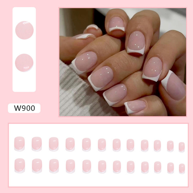 Девушка розовый сладкий короткий ногтей Красота кусок чистое желание белый французский моды все матч классический не устарел носить ногтей