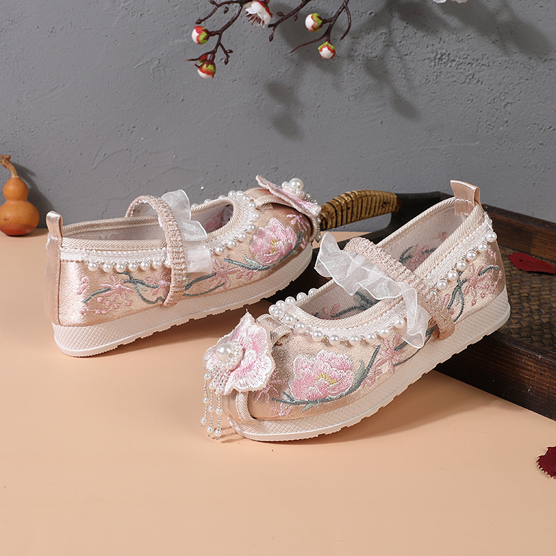 Детская обувь Chuqing Hanfu, обувь с вышивкой для девочек, детский антикварный костюм ручной работы в китайском стиле, весенне-осенняя Однослойная обувь