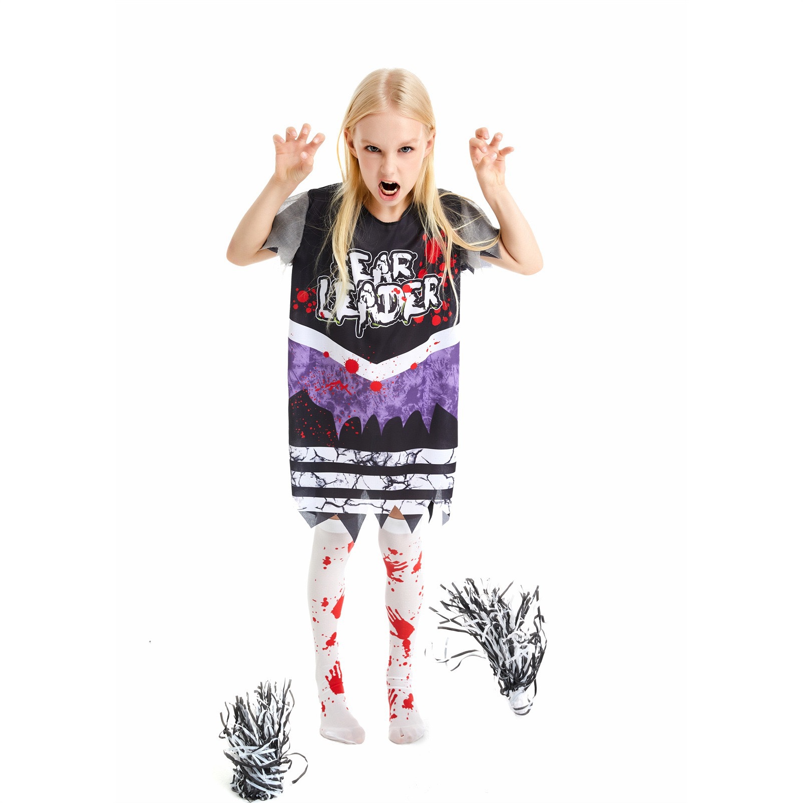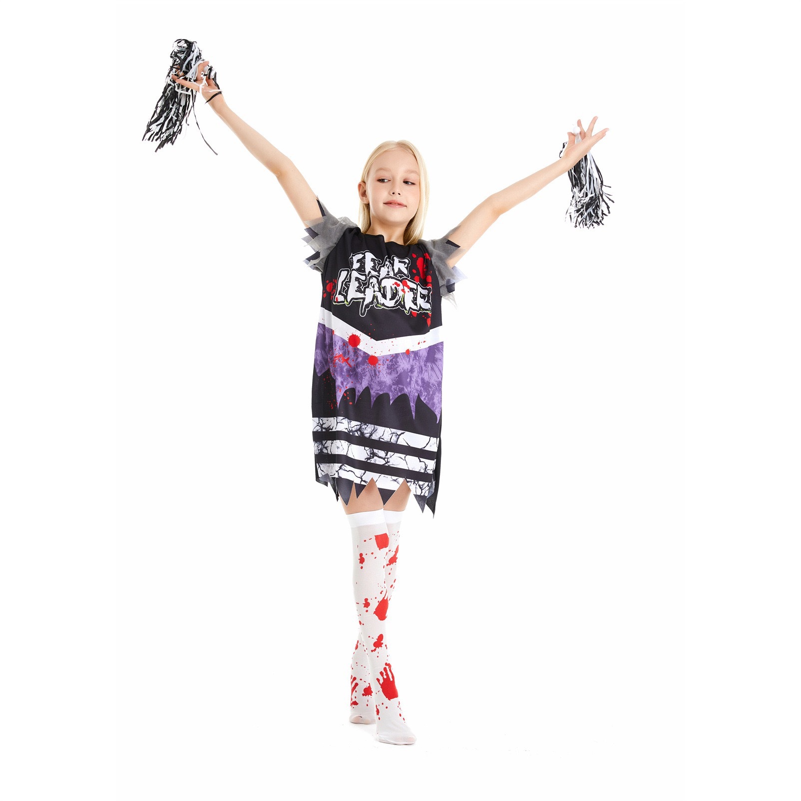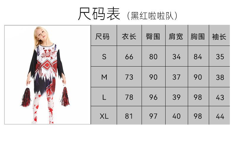 啦啦队新款三件套:衣服+黑红手环+血袜