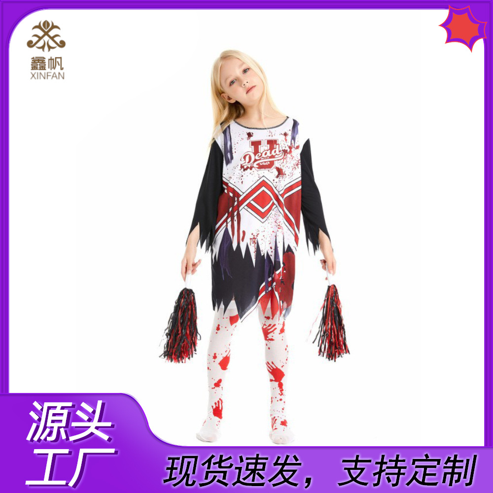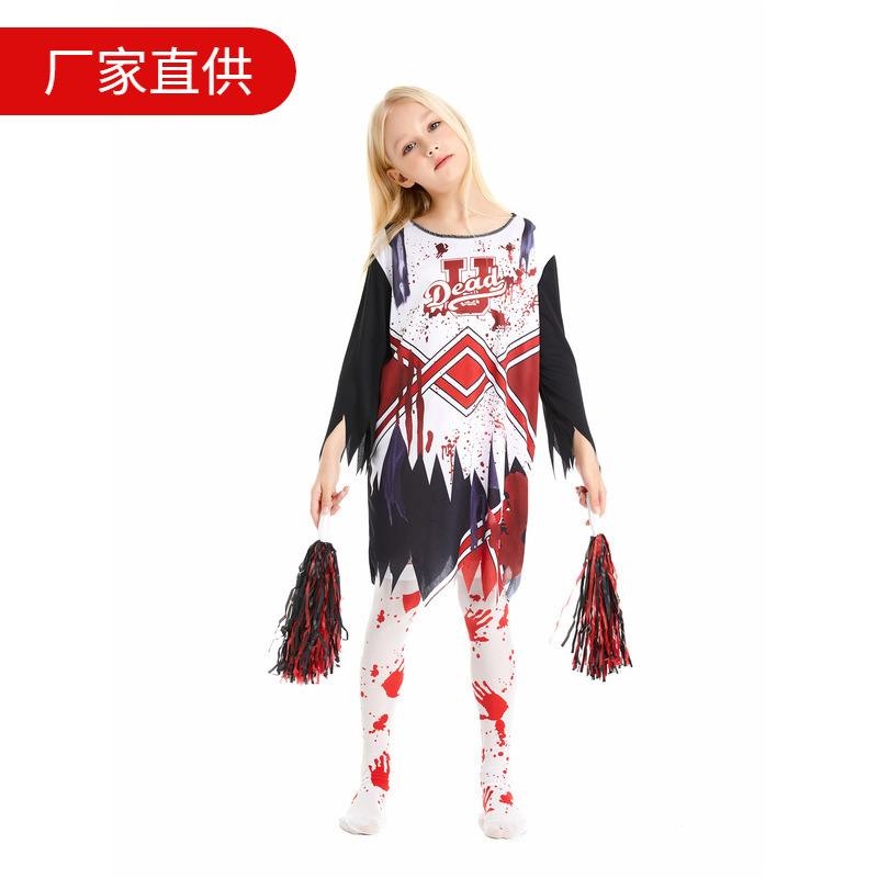 Детский Хэллоуин карнавал косплей зомби костюм девушки хоррор чирлидера cos платье для вечеринки