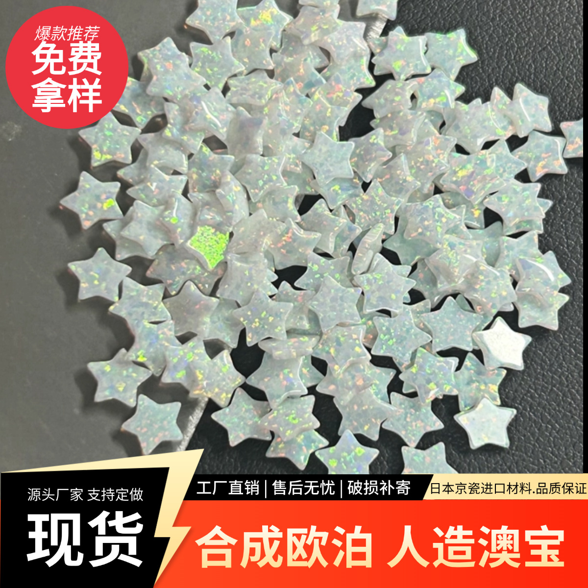 Оптовая Продажа с фабрики Опал голый камень 6 м синтетический опал искусственный опал пятиконечная Звезда Плоское простое Опаловое кольцо