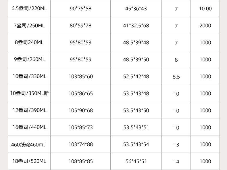 7oz-90*74*58 мм-230 мл; 12оз-105*90*65 мм-400 мл