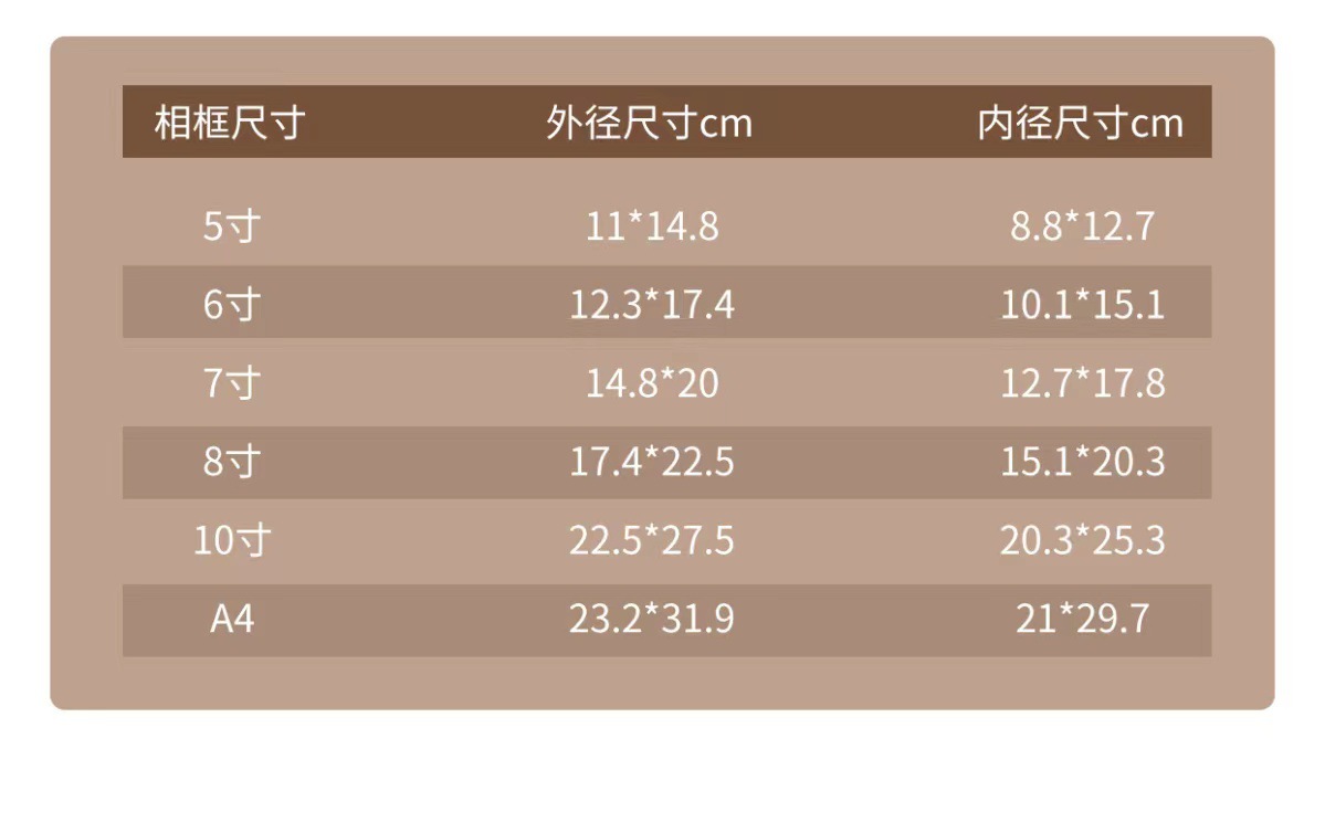 5 дюймов (8,9 * см); 6 дюймов (10,1 * см); 7 дюймов (12,7 * см); 8 дюймов (15,2 * см); 10 дюймов (20,3 * см); A4(21*29,7 см)