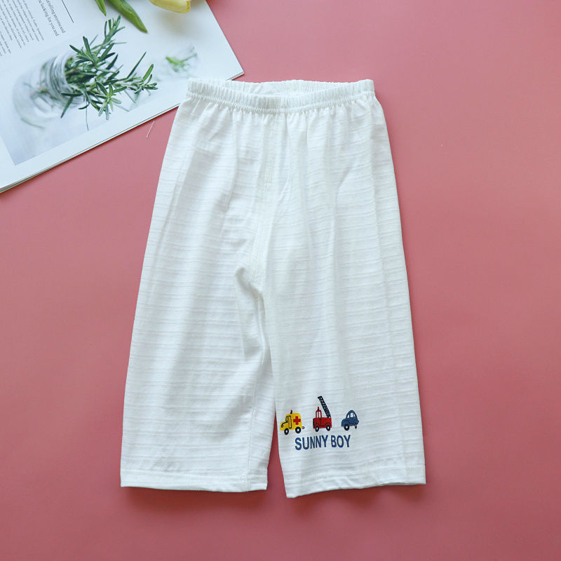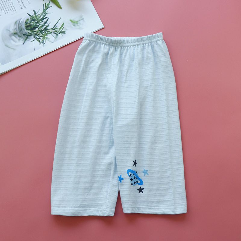 Детские домашние брюки из 100 хлопка, бамбуковые хлопковые брюки для мальчиков и девочек, 7-точечные тонкие Пижамные брюки, летние свободные повседневные брюки, партия