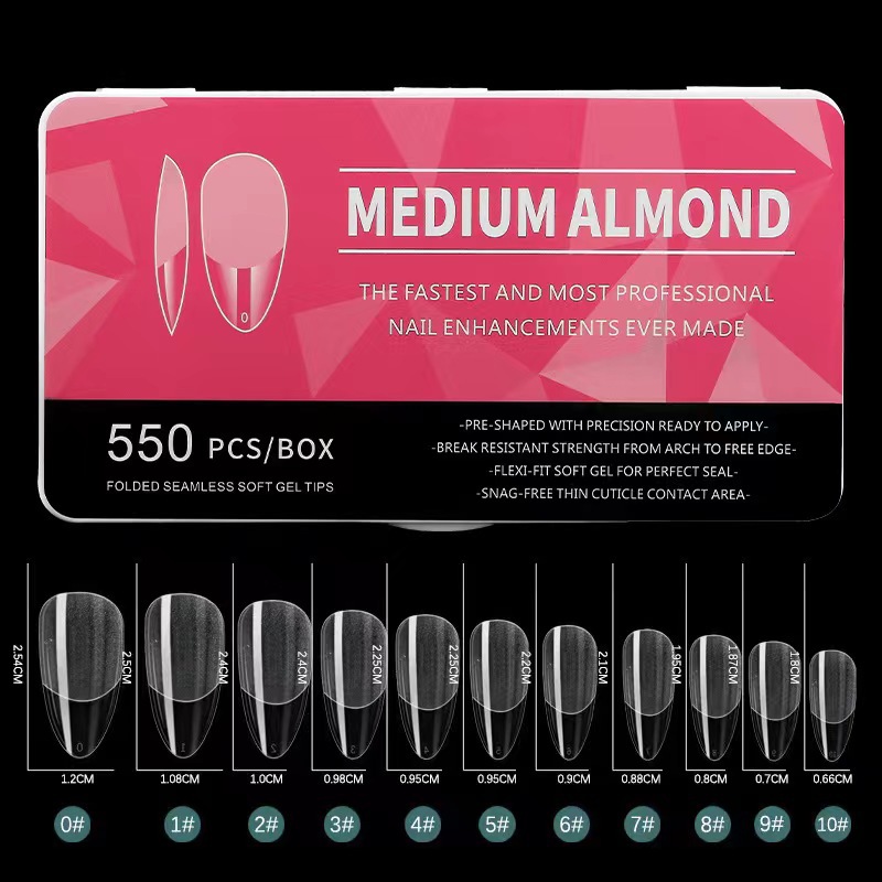 产品说明:盒装0-9个尺寸号,共10个尺寸号,每个尺寸号55片。专业甲片生产工厂,一直专注甲片生产和甲片开发、甲片制造经验丰富,100余套流行甲形模具,全系列甲片产品主要服务支持外贸电商OEM、品牌定制、开模、快速出货。工厂一站式批发 ebay 速卖通 亚马逊 淘宝天猫卖家 电子商务平台 美甲店 零售及国内外批发,需要大订单洽谈业务可以直接联系工厂,我们会给你有市场竞争力的价格!