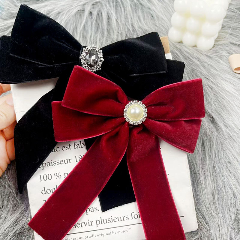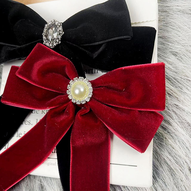 Корейская версия Dongmun галстуков-бабочки рубашка женская Xiaoxiangfeng жемчужный воротник Академия ветра черный бархатный лук с декором