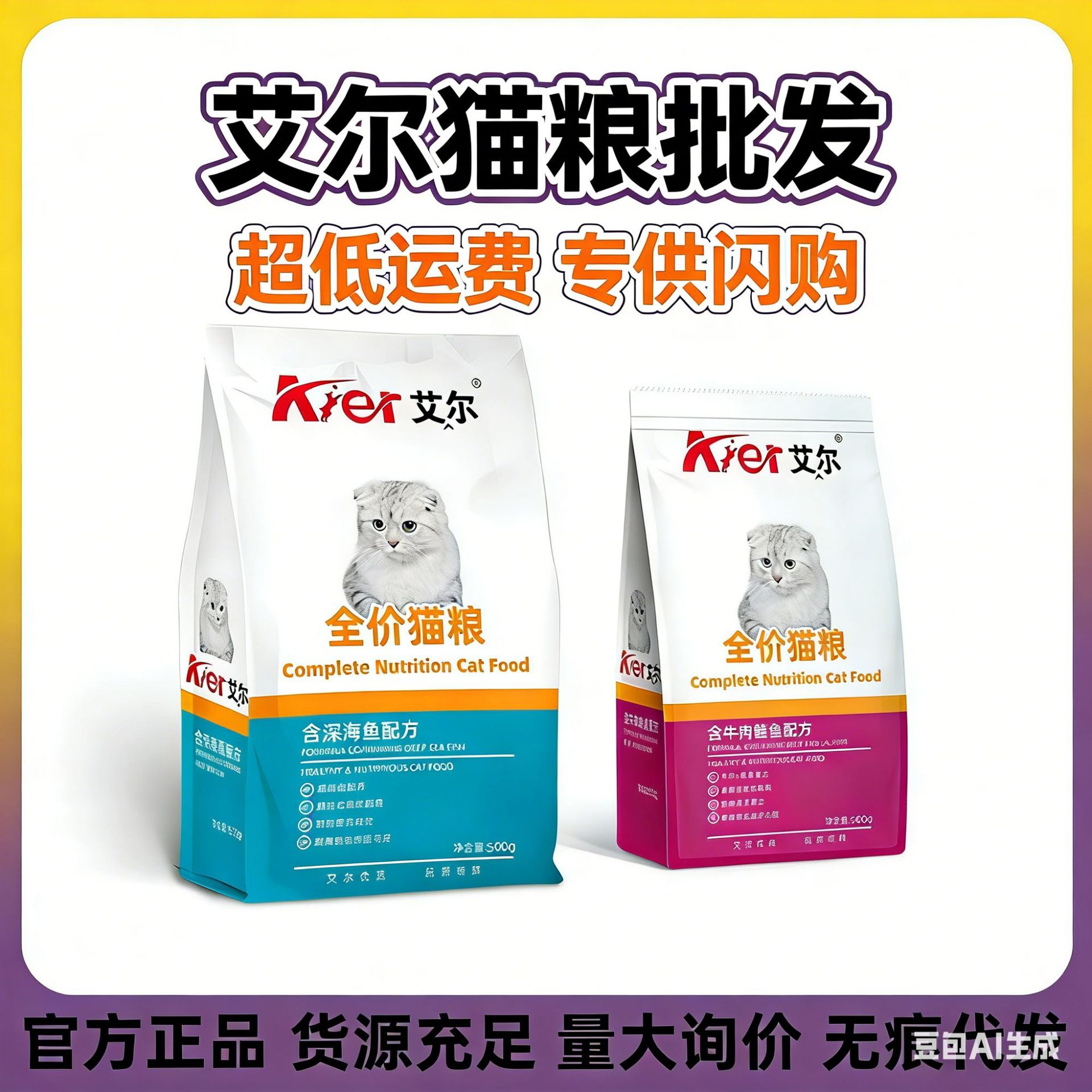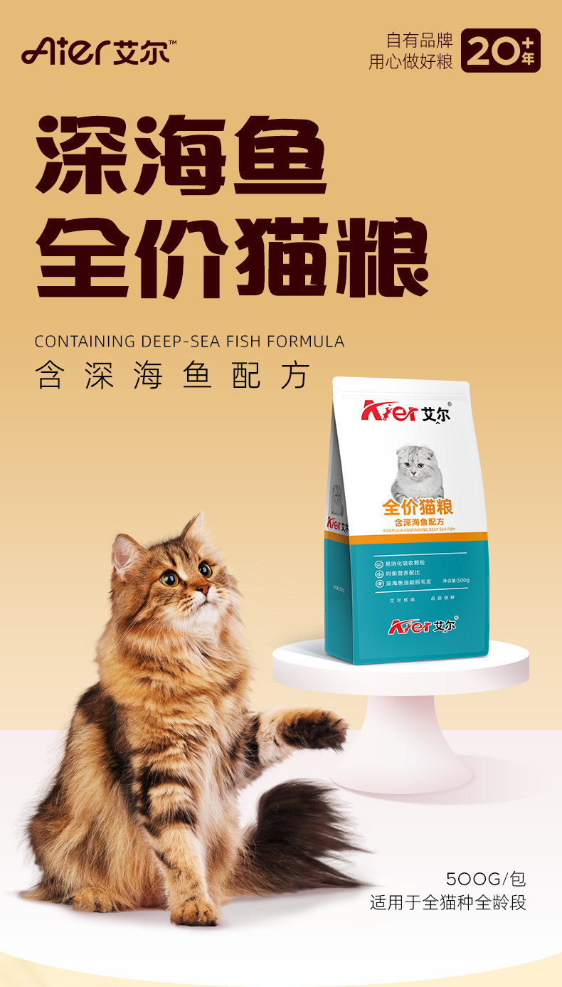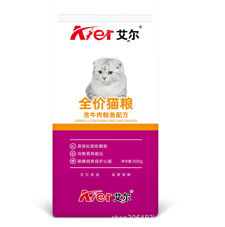 Корм для кошек Aier: прямые продажи от производителя, глубоководная рыба, говядина, лосось, 500 г, для взрослых кошек и котят, полнорационный, оптом, бесплатная доставка