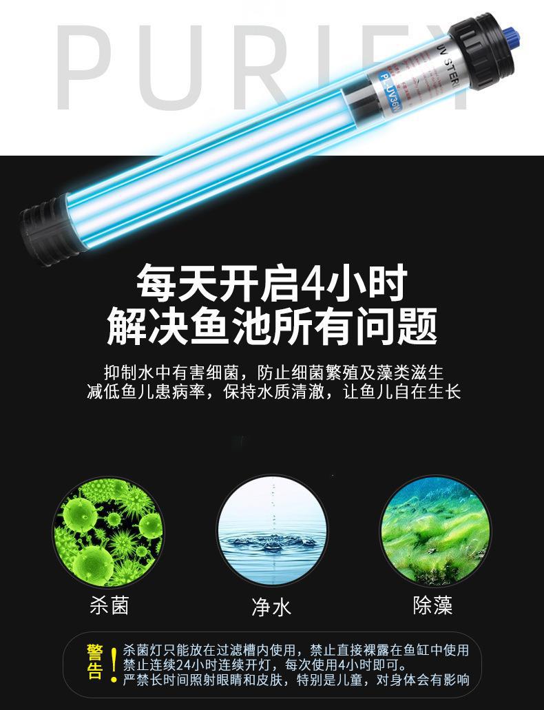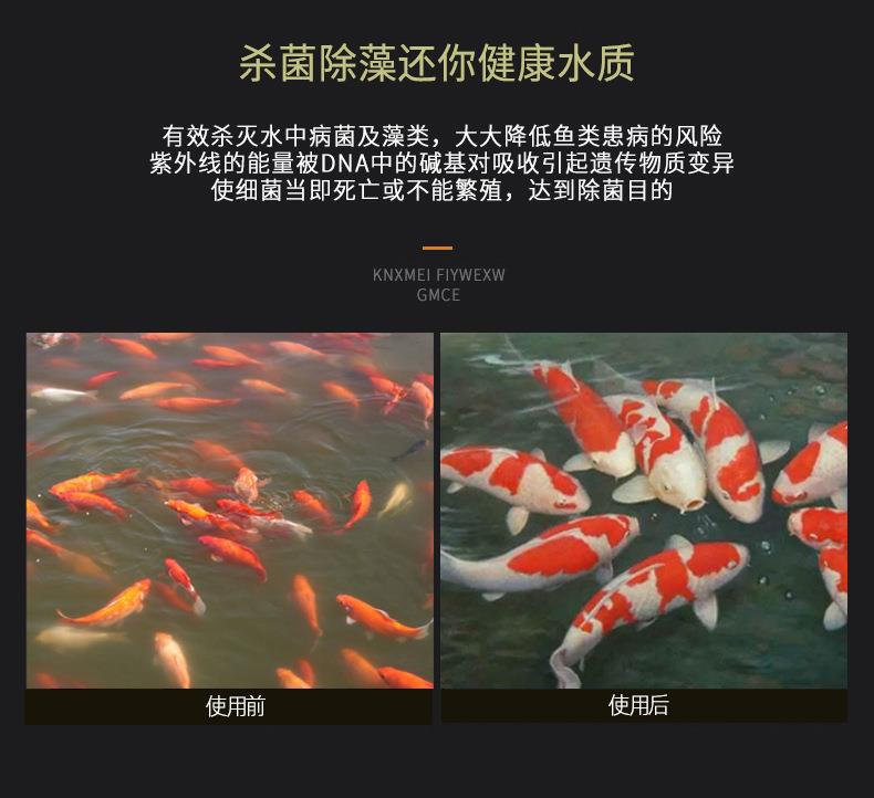 Двойная трубка 18 Вт (общая длина 36 см) рекомендуется три квадратных пруда для разведения рыбы; Двойная трубка 24 Вт (общая длина 36 см) рекомендуется пять квадратных прудов для разведения рыбы; Двойная трубка 36 Вт (общая длина 48 см) рекомендуется двенадцать квадратных прудов для разведения рыбы; Двойная трубка 55 Вт (общая длина 55,5 см) рекомендуется 18 квадратных прудов для разведения рыбы; Двойная трубка 75 Вт (общая длина 68 см) рекомендуется 25 квадратных прудов для разведения рыбы; Самотонущая модель мощностью 18 Вт с двойной трубкой (общая длина 36 см) предполагает три квадратных пруда для ловли рыбы.; Самотонущая модель с двойной трубкой Мощностью 24 Вт (общая длина 36 см) предлагает пять квадратных прудов для ловли рыбы; Самотонущая модель с двумя трубками мощностью 36 Вт (общая длина 48 см) предполагает 12 квадратных прудов для ловли рыбы.; Самотонущая модель мощностью 55 Вт с двойной трубкой (общая длина 55,5 см) предполагает 18 квадратных прудов для ловли рыбы.; Двойная трубка 75 ватт само-тонуть (общая длина 68 см) предполагает 25 квадратных пруд для разведения рыбы