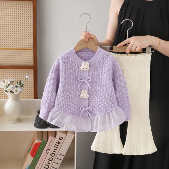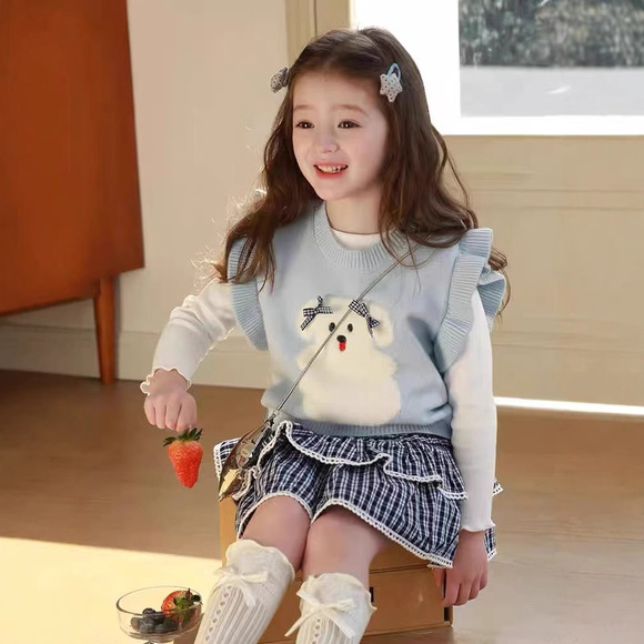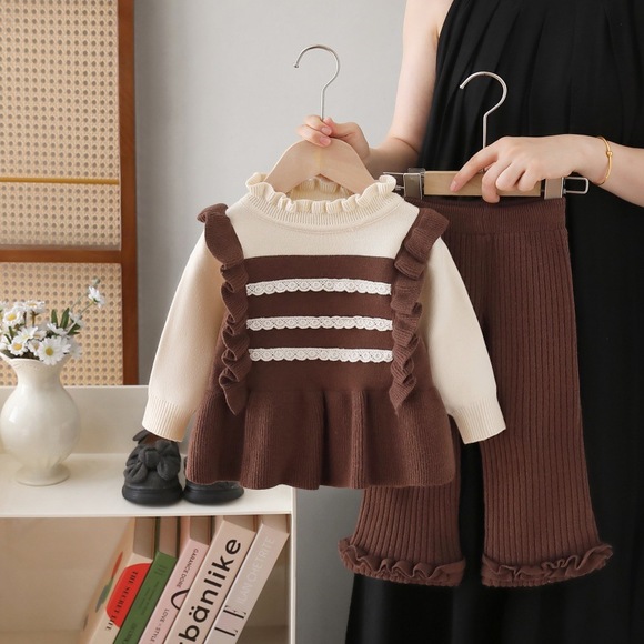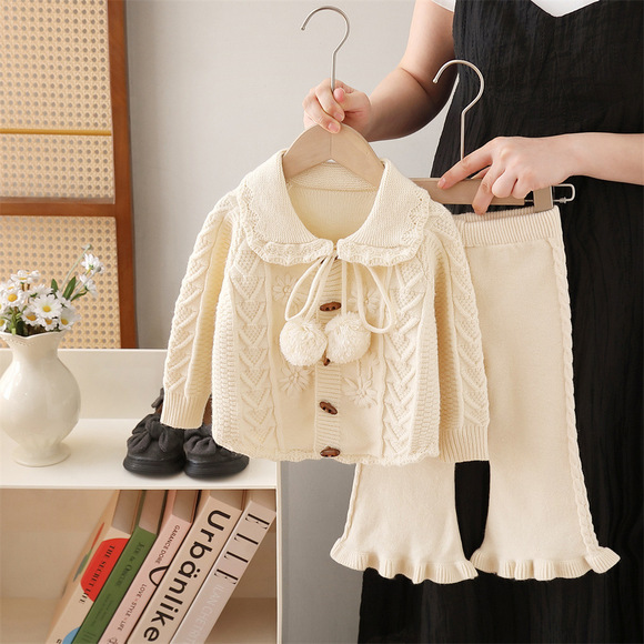Двухкомплектный вязаный костюм для девочек: свитер с большим воротником и круглой горловиной, осенне-зимняя новинка