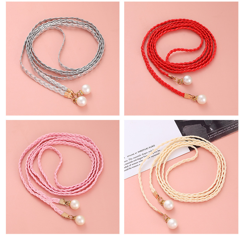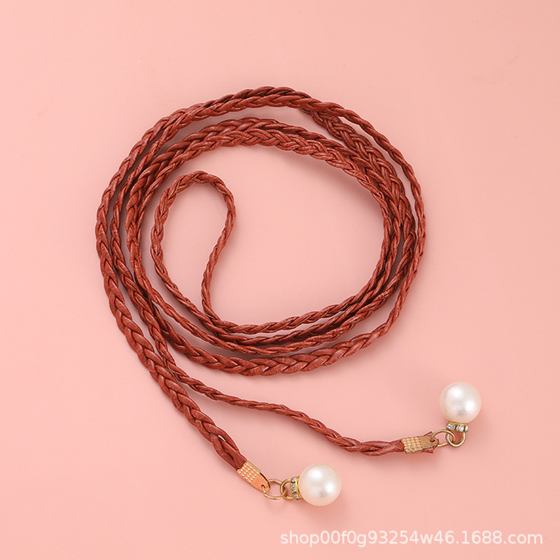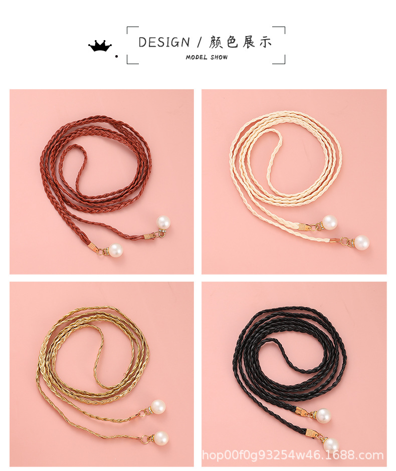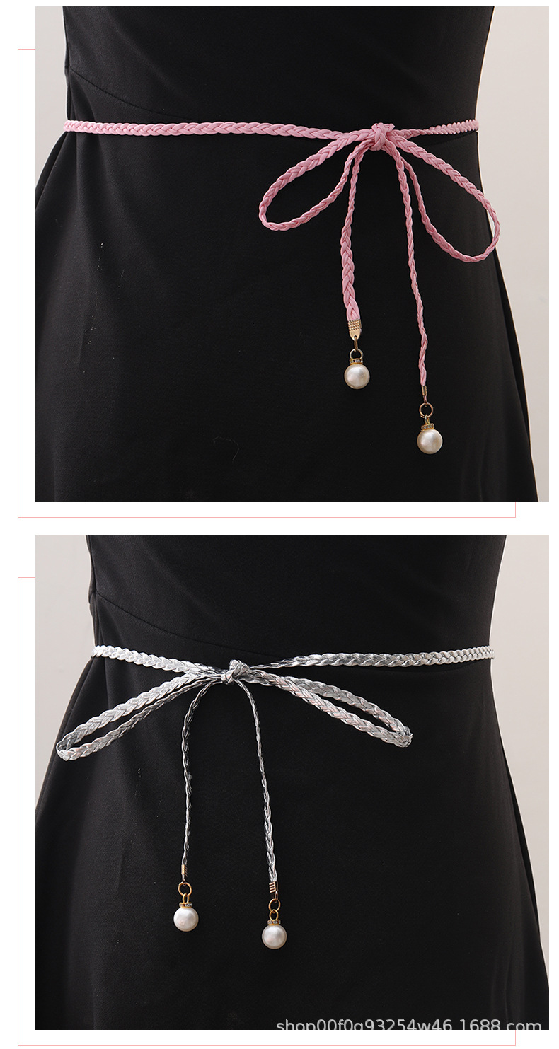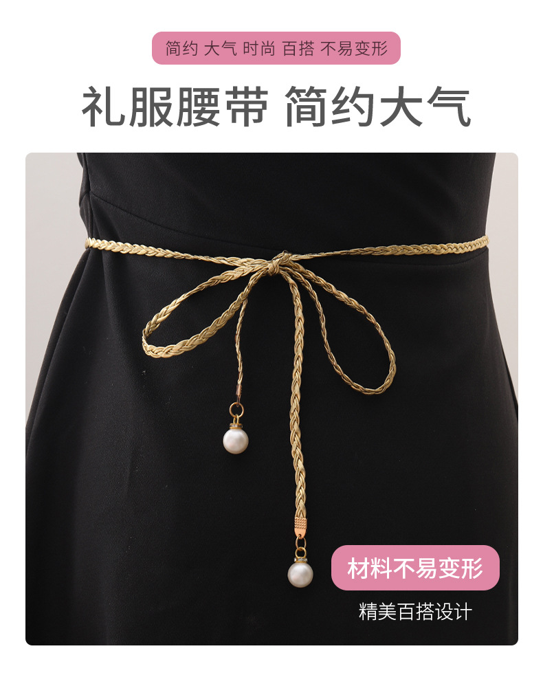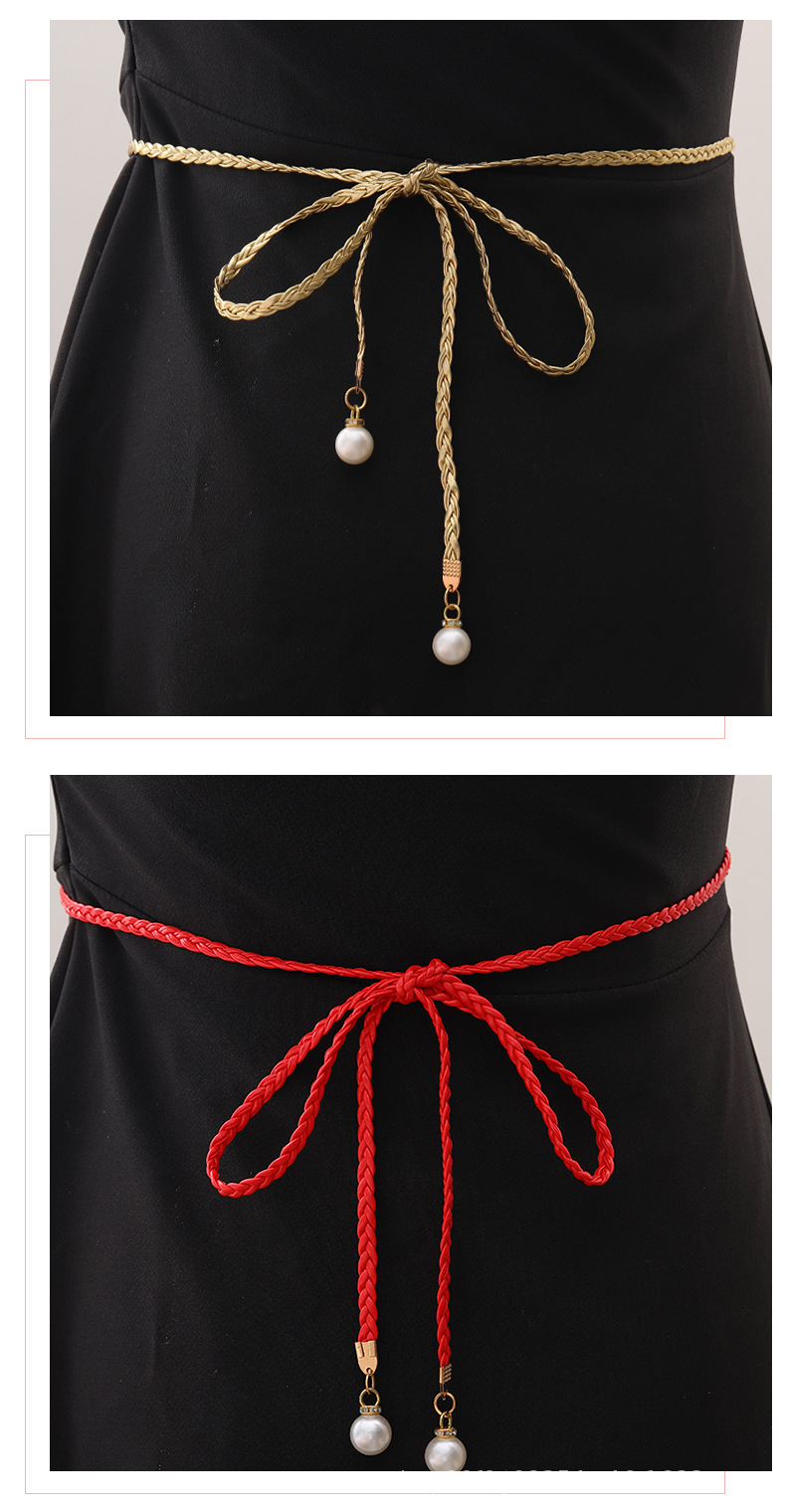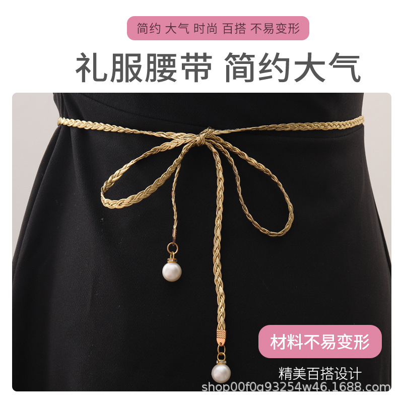 Женское модное Тканое платье с завязанной на талии цепочкой с простым декоративным жемчугом на тонкой талии с цепочкой из кожи на талии