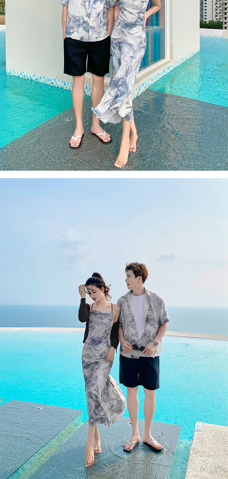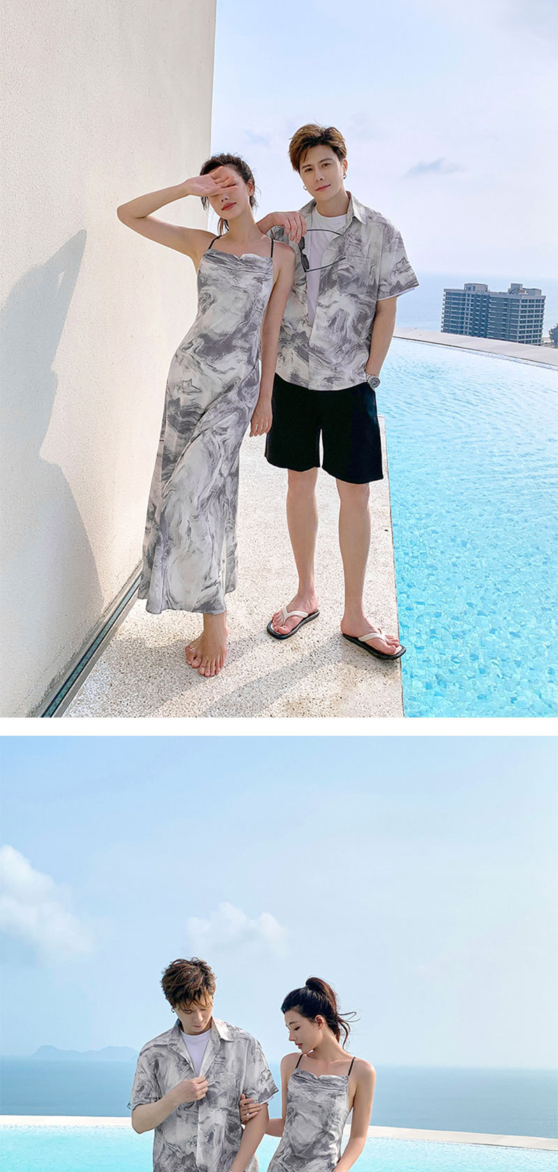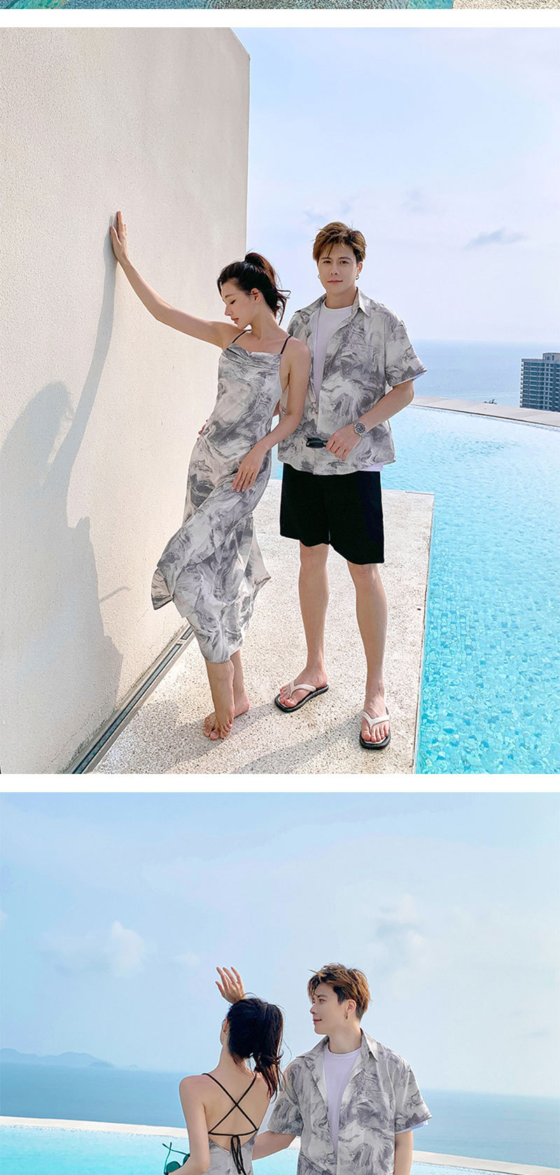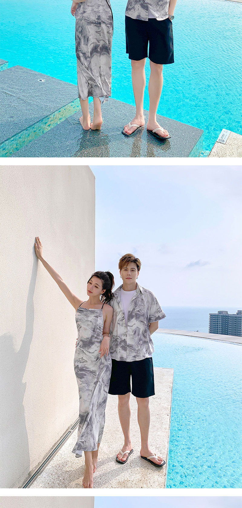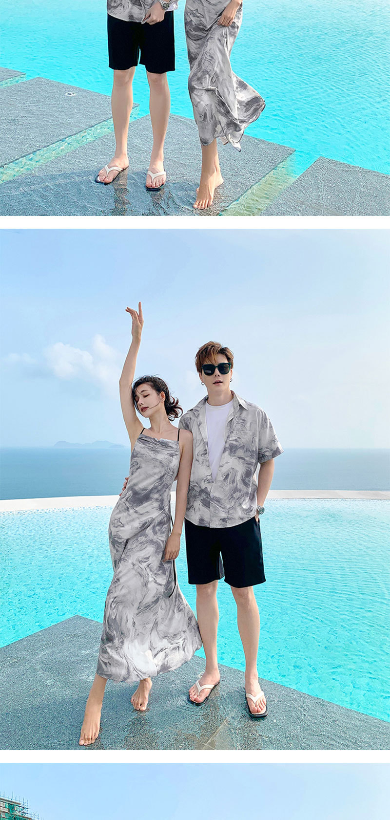 2023 Парное платье Пляжное Приморское дорожное Чернильное платье с открытой спиной и ремешками Мужская рубашка с короткими рукавами