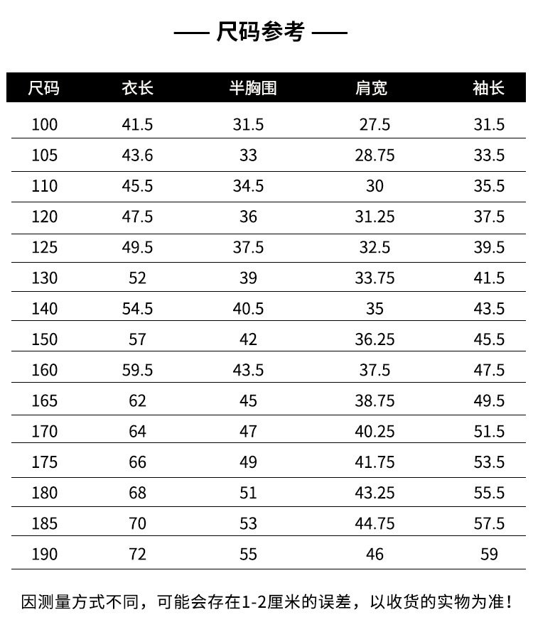 100cm; 105cm; 110cm; 120cm; 125cm; 130cm; 140cm; 150cm; 160cm; 165cm; 170cm; 175cm; 180cm; 185cm; 190cm