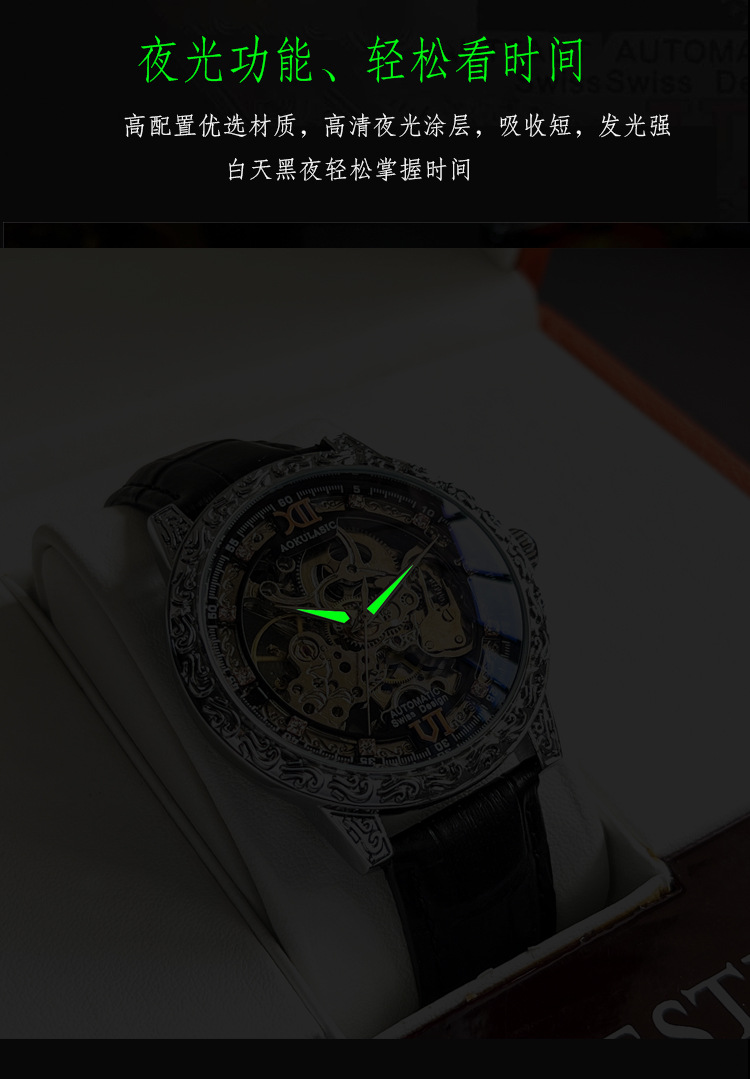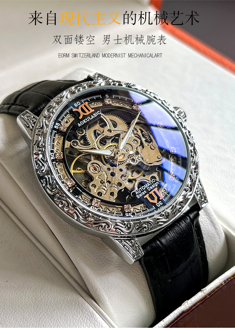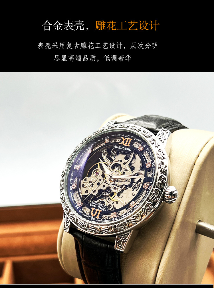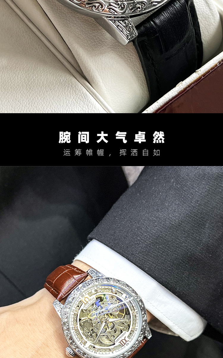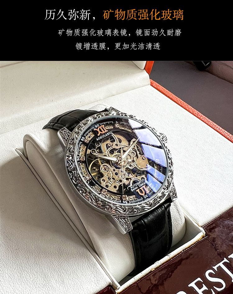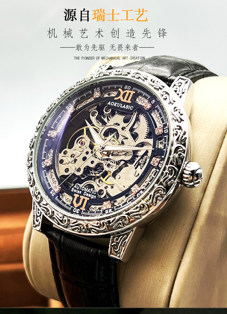 Новые полые резные автоматические механические часы в стиле ретро, мужские часы высокого класса, водонепроницаемые часы со светящейся кожей для мужчин