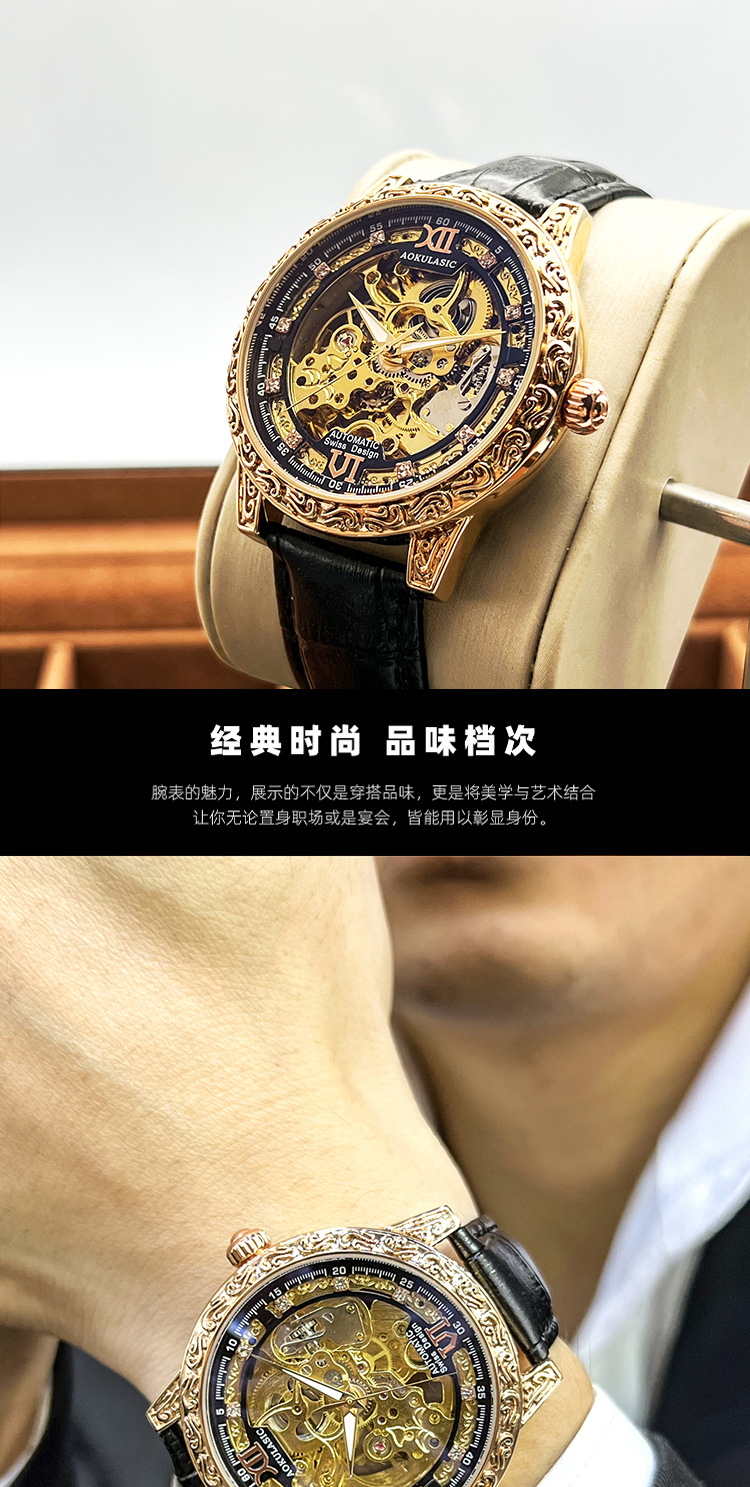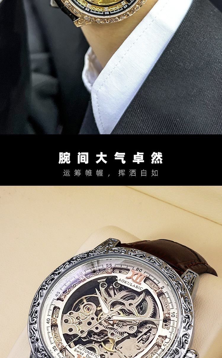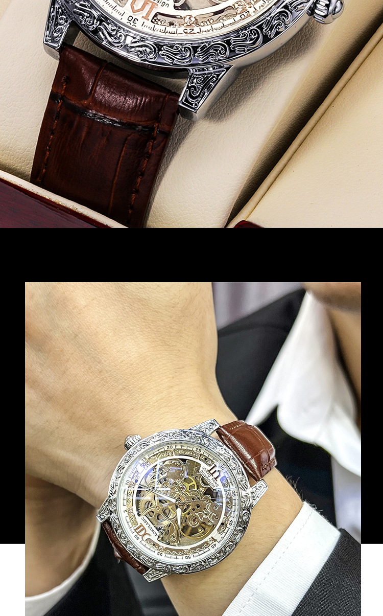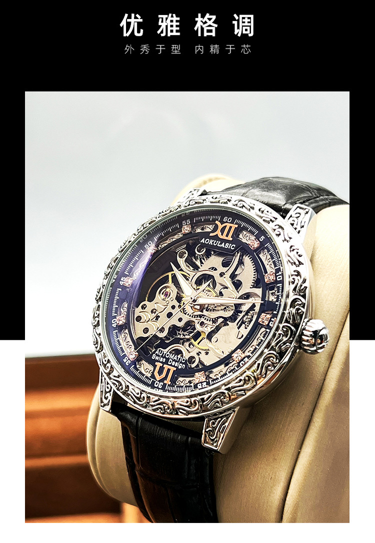 Новые полые резные автоматические механические часы в стиле ретро, мужские часы высокого класса, водонепроницаемые часы со светящейся кожей для мужчин