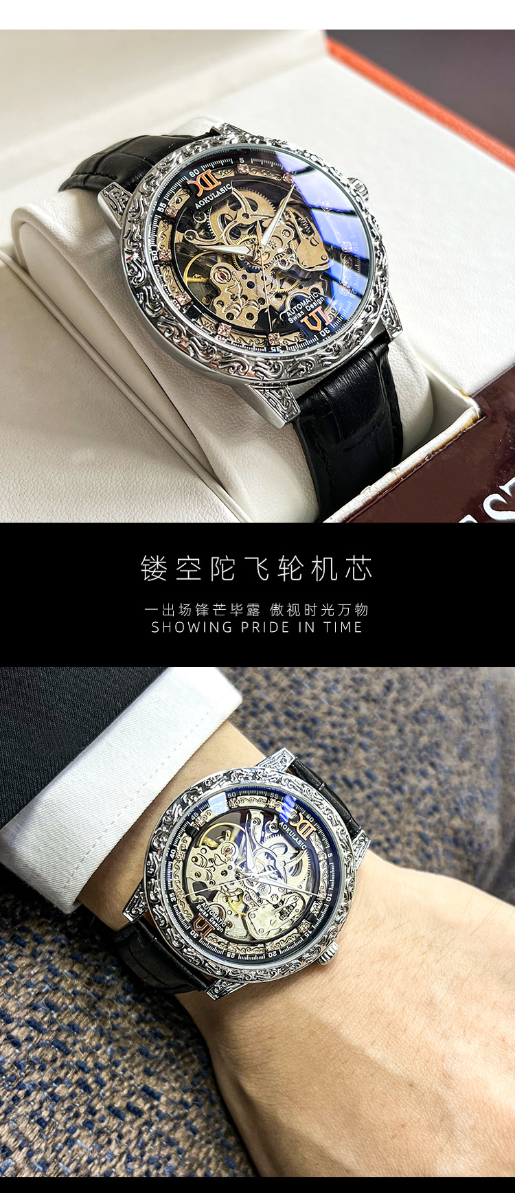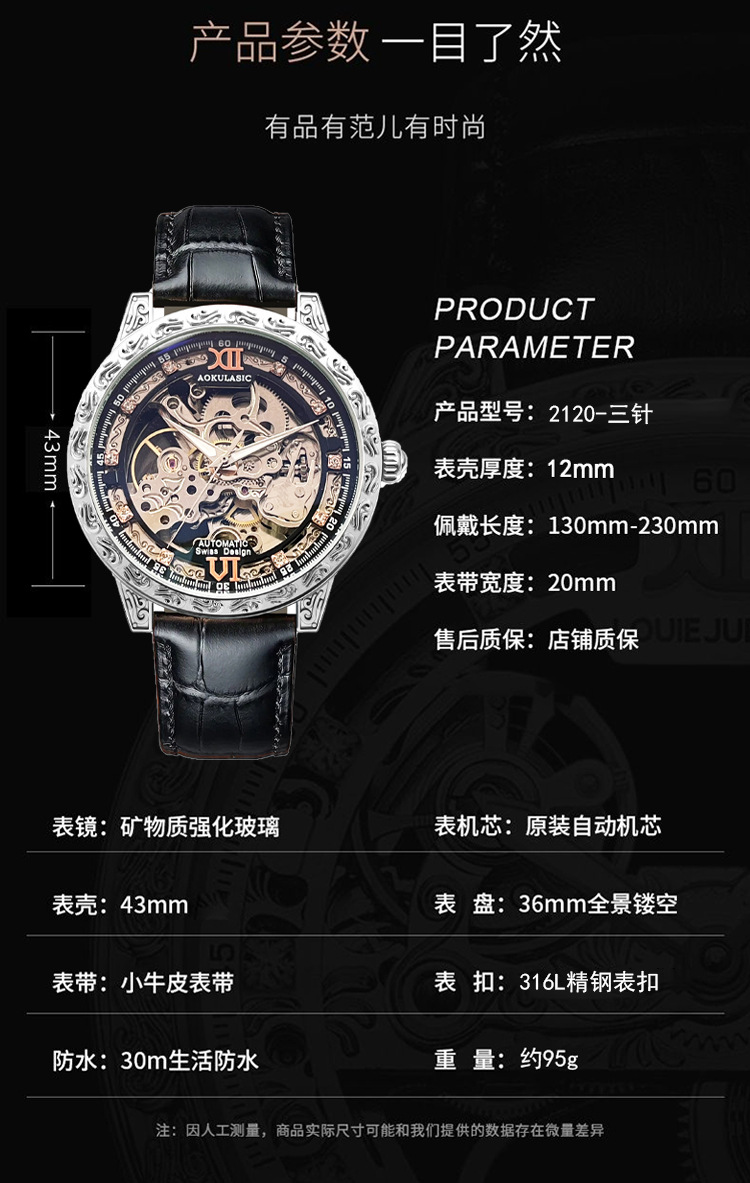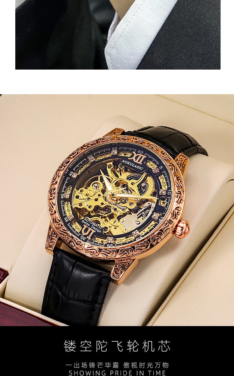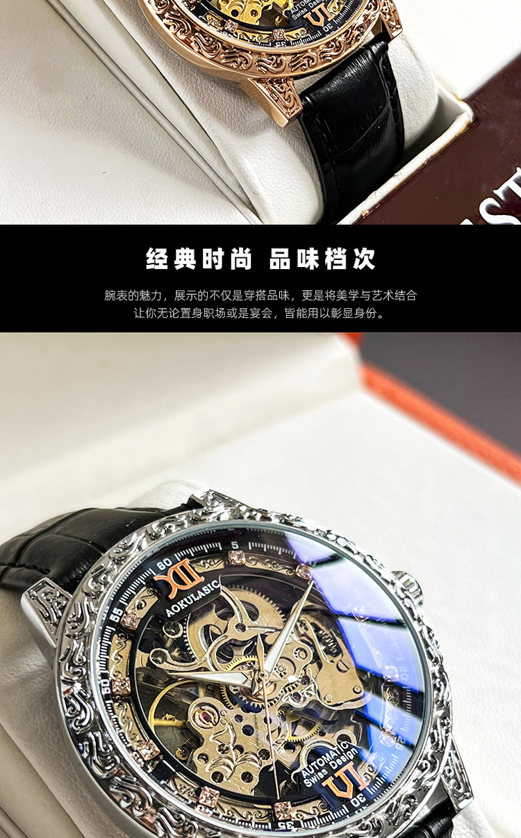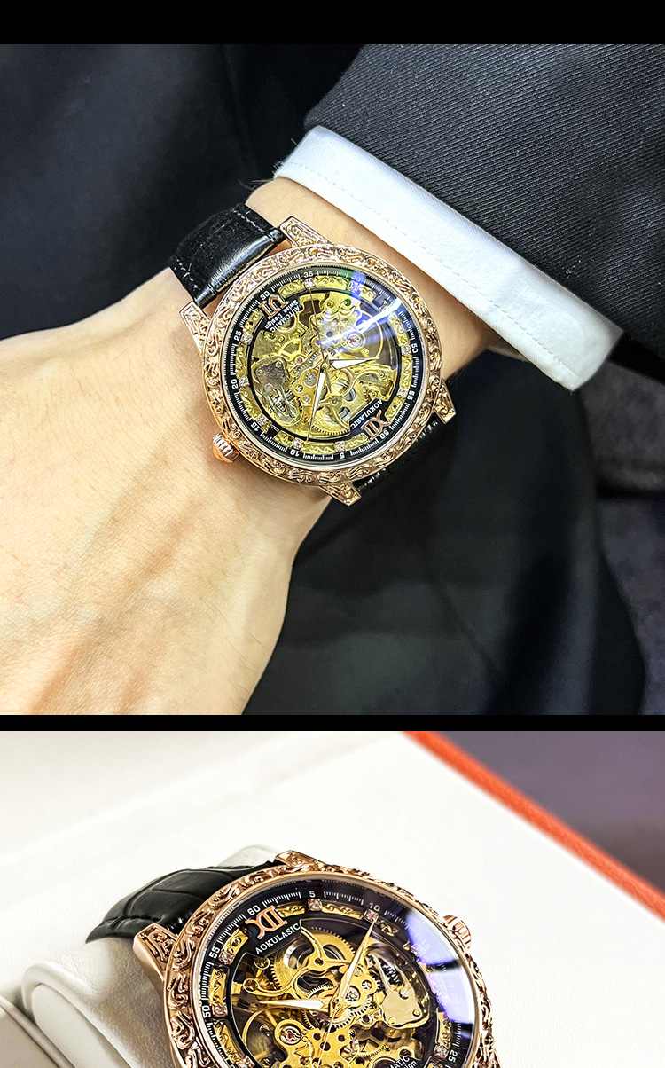 Новые полые резные автоматические механические часы в стиле ретро, мужские часы высокого класса, водонепроницаемые часы со светящейся кожей для мужчин