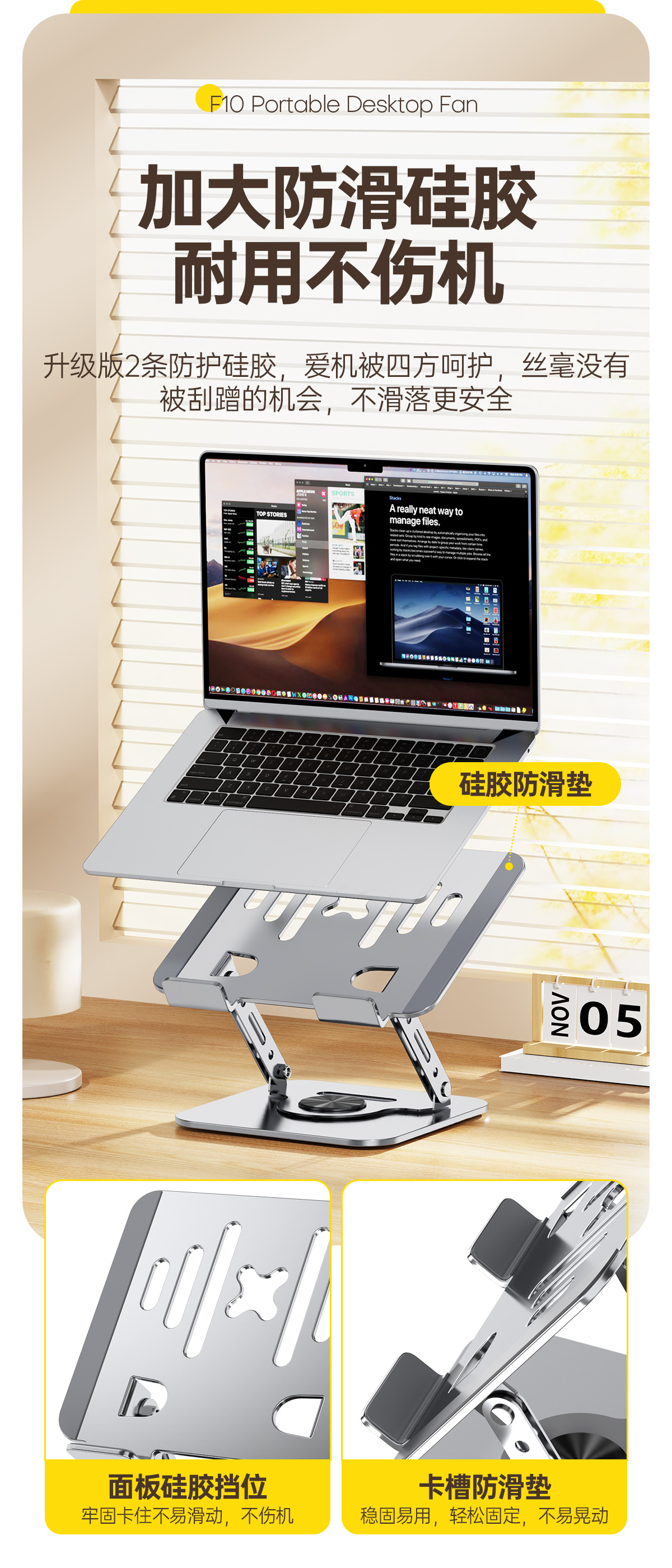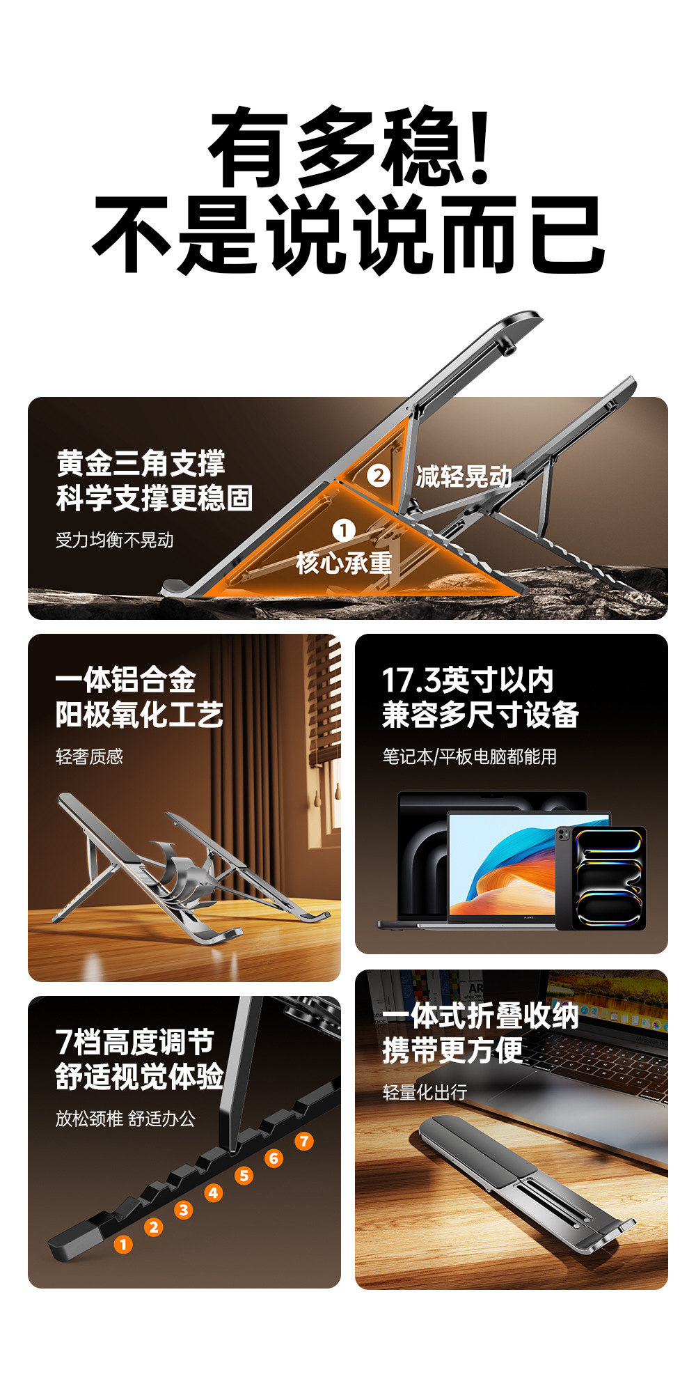 Подставка для ноутбука, охлаждающая подставка для рабочего стола из алюминиевого сплава, портативная 17inch подставка для игрового ноутбука, стабильная поддержка