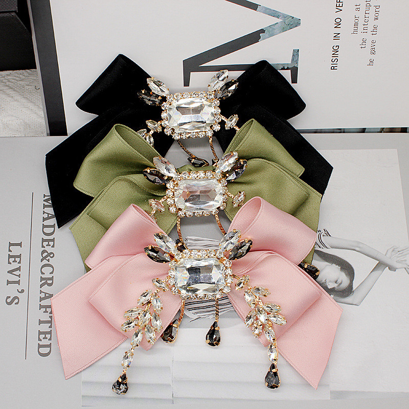 Элегантная черная заколка-бантик в стиле колледж с кристаллами, аксессуар для волос в стиле Лолита, корейский милый стиль