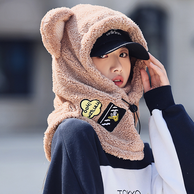 Зимняя теплая серия милый медведь шапка маска все-в-одном Женская защита ушей Велоспорт теплый лыжный шлем плюшевая шапка