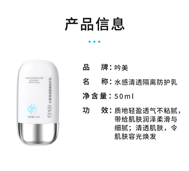 Yinmei ощущение воды прозрачная изоляция защитный крем увлажняющий контроль масла Осветляющий натуральный не поддельный белый макияж Передняя основа защитный крем