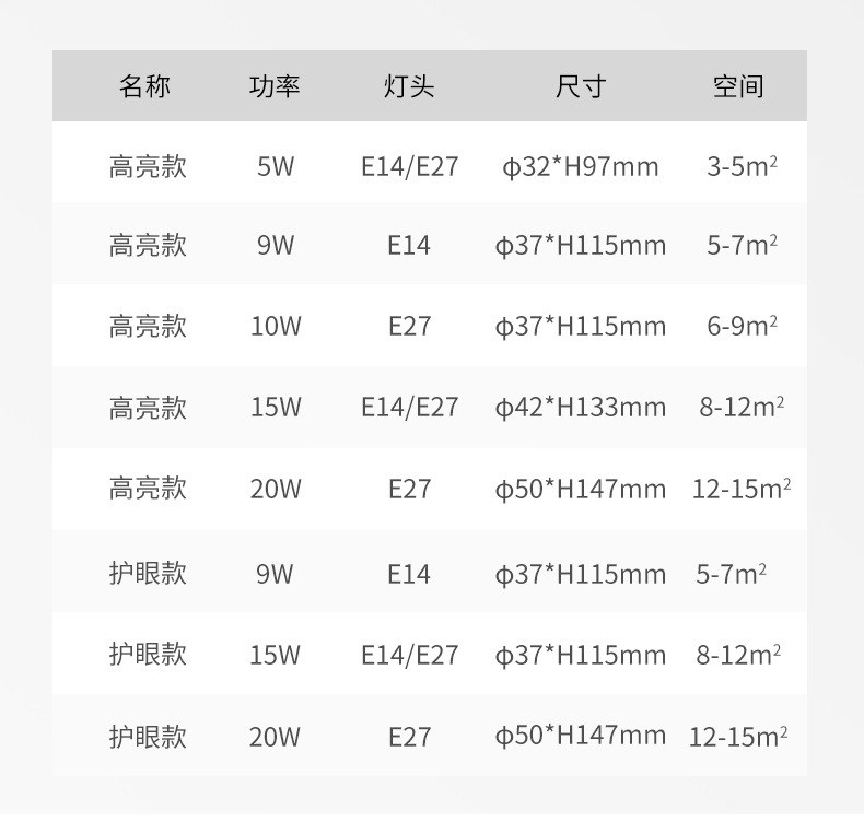 Цилиндрическая лампочка мощностью 5 Вт [винтовая цоколь E27], высокая яркость; Цилиндрическая лампочка мощностью 10 Вт [винтовая цоколь E27], высокая яркость; Цилиндрическая лампочка мощностью 15 Вт [винтовая цоколь E27], высокая яркость; Цилиндрическая лампочка мощностью 20 Вт [винтовая цоколь E27], высокая яркость; Цилиндрическая лампочка мощностью 5 Вт [винтовой порт E14], постоянный ток; Цилиндрическая лампочка мощностью 9 Вт [винт E14], постоянный ток; Цилиндрическая лампочка мощностью 15 Вт [винтовой порт E14], постоянный ток; Цилиндрическая лампочка мощностью 9 Вт [винтовой порт E14] с высоким дисплеем, защита глаз; Цилиндрическая лампочка мощностью 15 Вт [винтовой порт E14], защита глаз с высоким дисплеем; Цилиндрическая лампочка мощностью 15 Вт [винтовой порт E27] с высоким дисплеем, защита глаз; Цилиндрическая лампочка мощностью 20 Вт [винтовая розетка E27] с высоким дисплеем, защита глаз