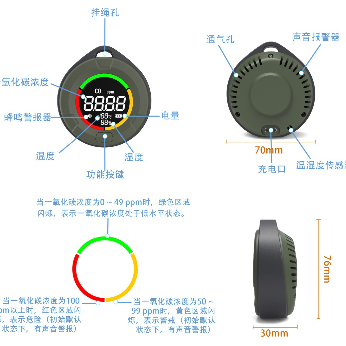 Новый портативный детектор воздуха угарного газа CO бытовой монитор качества воздуха кемпинг анти-отравления