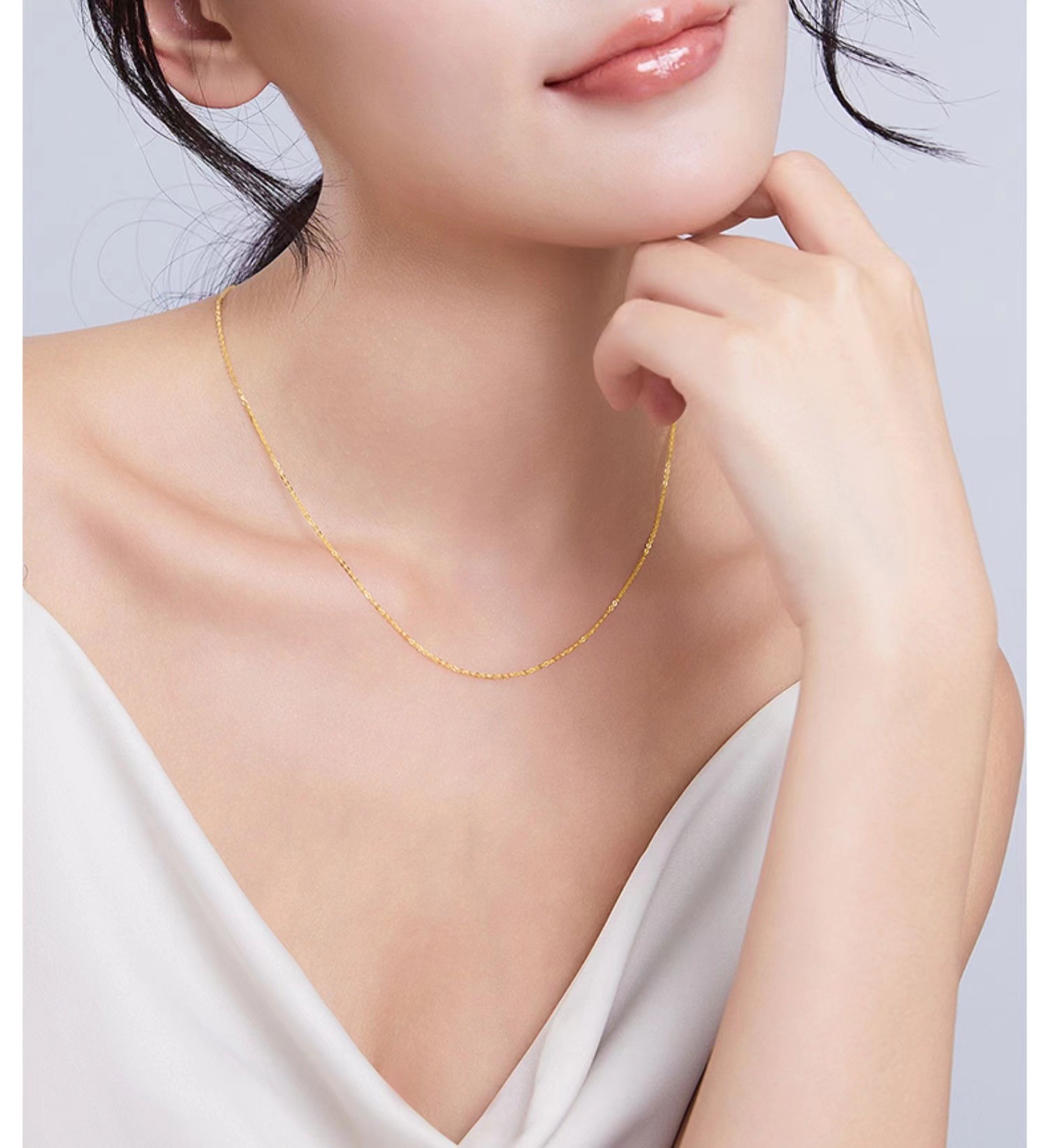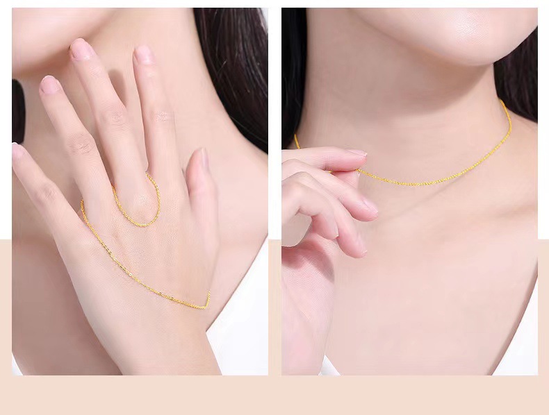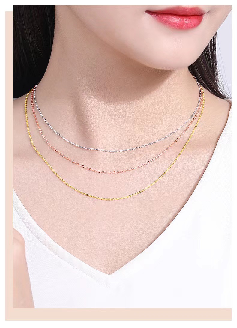 18-каратное золото flash o цепочка ожерелье au750 цвет золотые взрывы простой золотой темперамент ключицы Джокер o слово ожерелье водная оболочка оптом