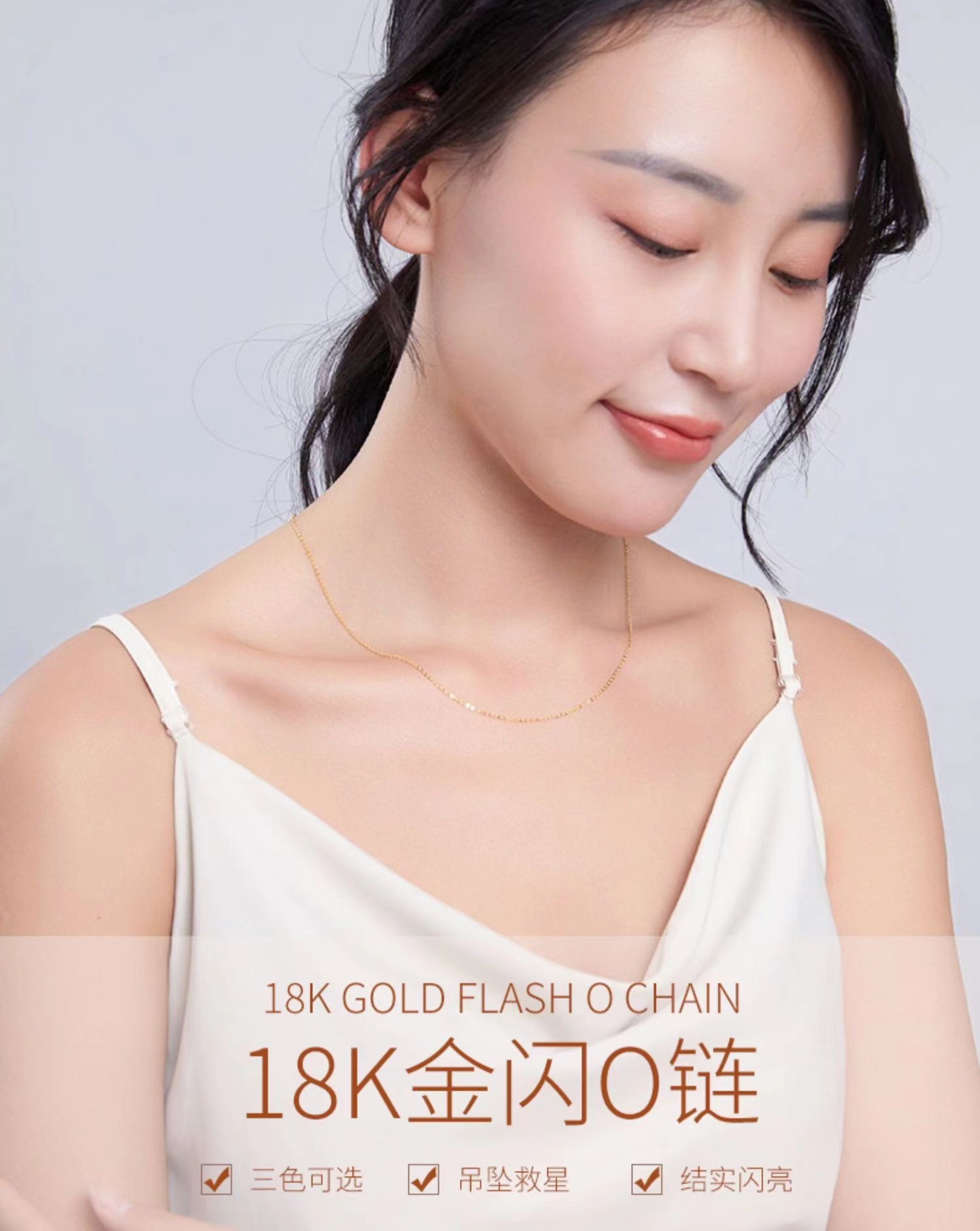 Золотая желтая цепочка Flash O; Цепочка с блестками из розового золота; Платиновая белая цепочка Flash O