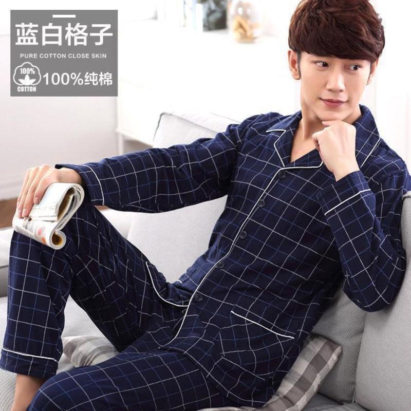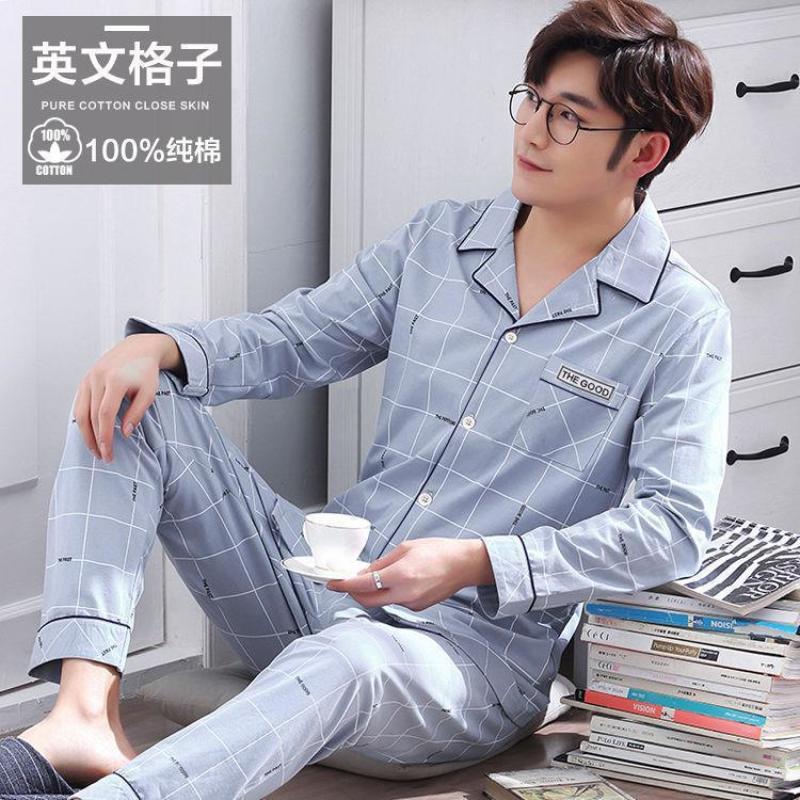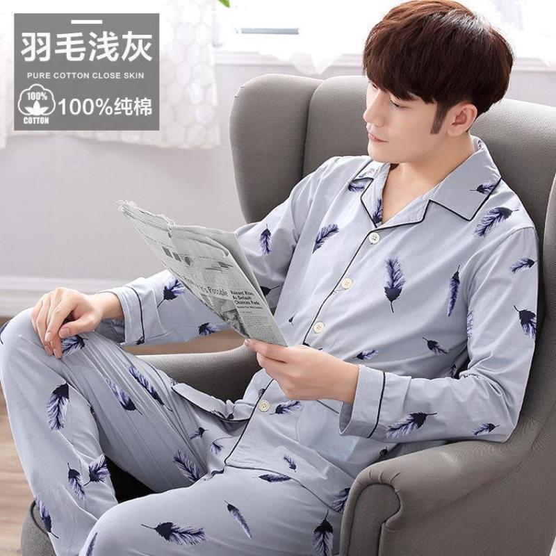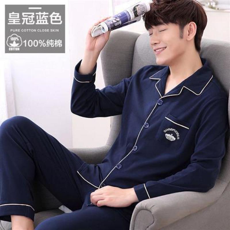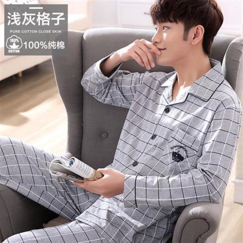 Пижама мужская с длинным рукавом 100% хлопок Весна Осень Лето Хлопок Повседневный Кардиган удобный тонкий молодежный домашний костюм