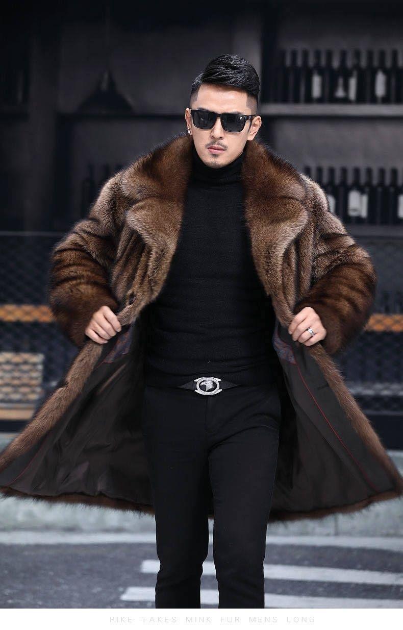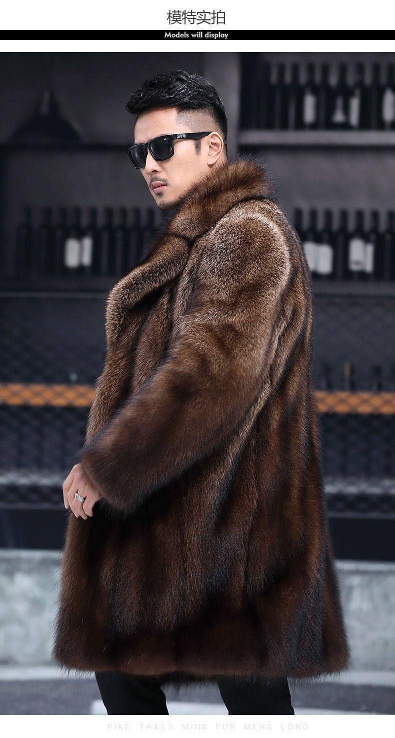 Длинное мужское пальто из искусственного меха норки, зимнее, с капюшоном, утолщенное, из искусственного меха норки