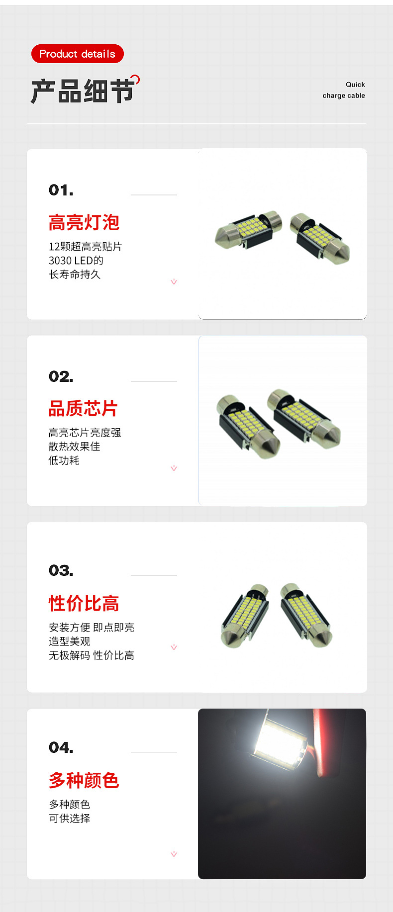 Автомобиль LED подсветка крыши света декодирование безэлектродных 2016 18 24 30 33 свет двойной острый свет 31-41 мм 12 В