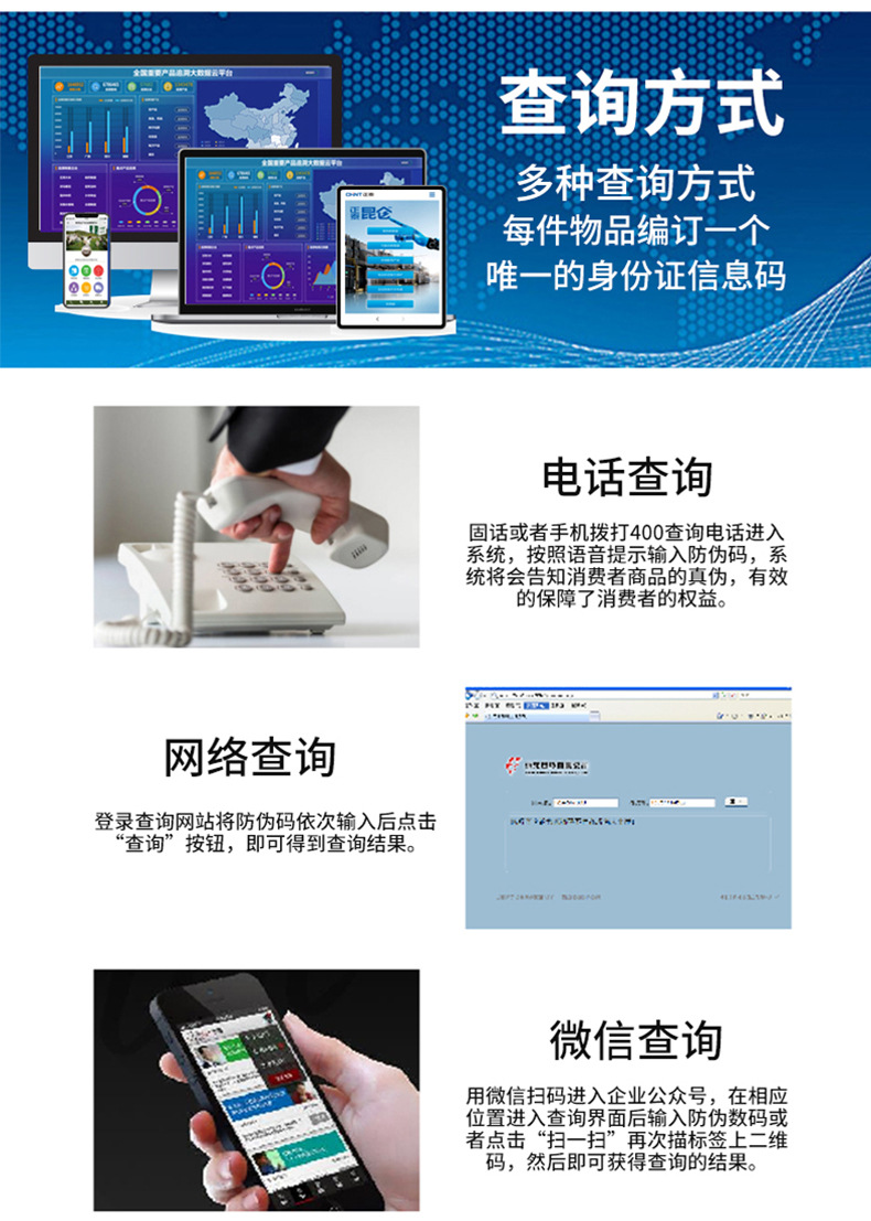 Номер телефона 400, запрос на веб-сайте, WeChat, QR-код, мобильное приложение и другие методы запроса.