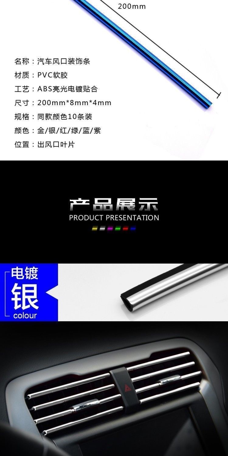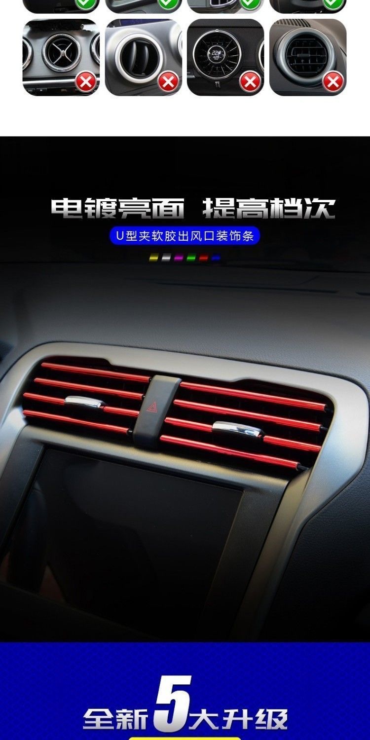 Автомобильное воздуховыпускное отверстие Декоративная полоса Средняя сетка с зажимом U-образная Гальваническая яркая полоса Кондиционер Хромированный цвет Принадлежности для модификации интерьера