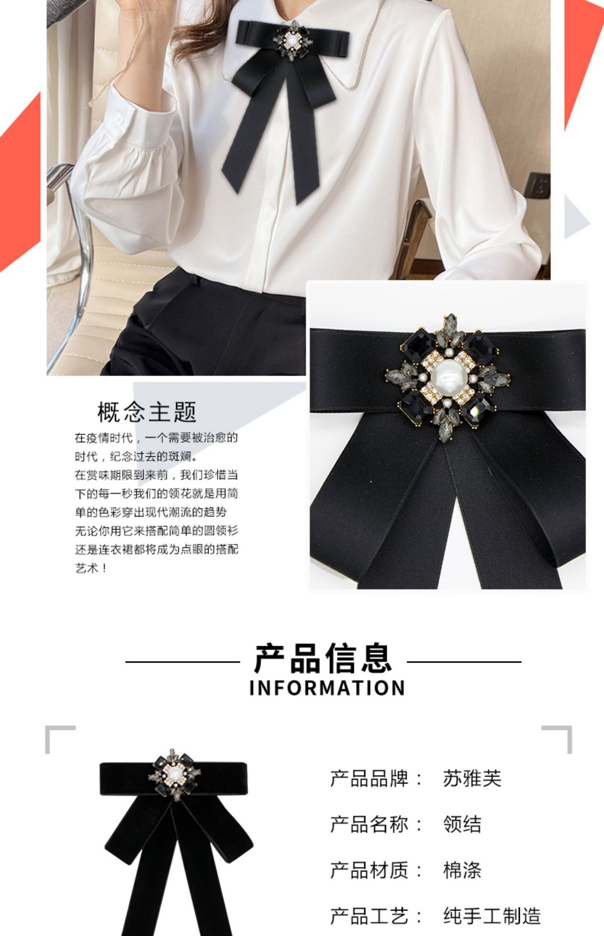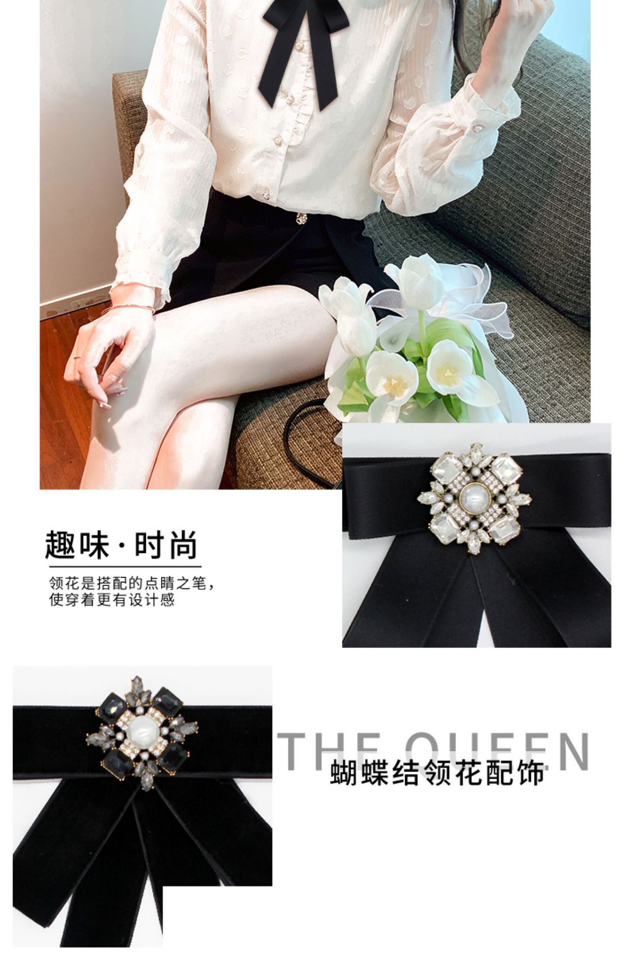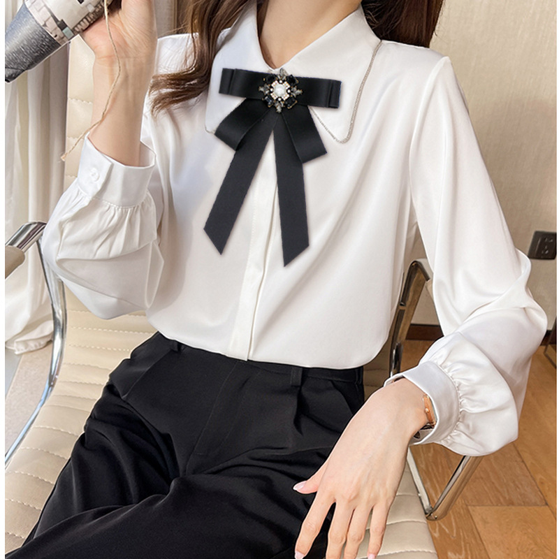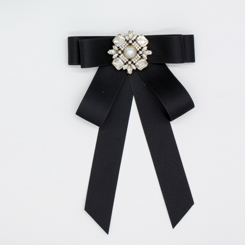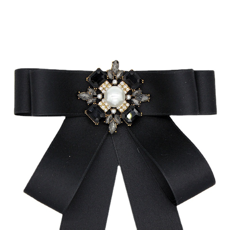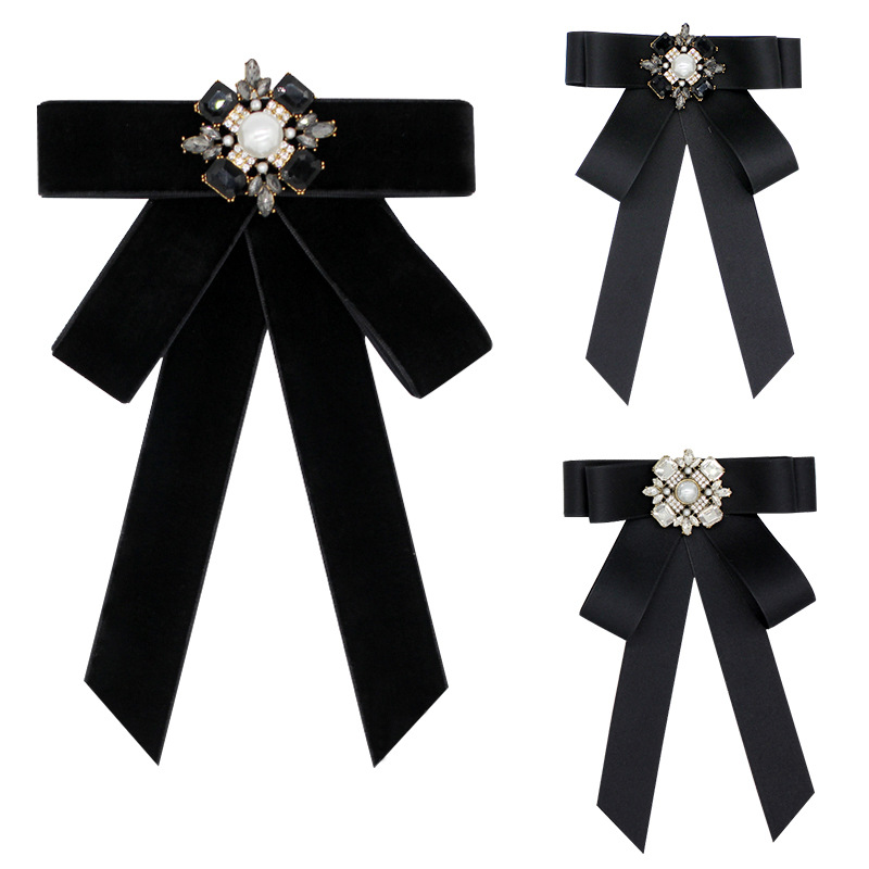 Женский бант-бабочка в корейском стиле, большой бантик, черный квадратный бант с камнями, украшение для воротника рубашки, висячий цветочный декор на шею, модная рубашка.