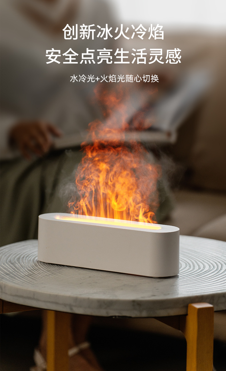 七彩仿真火焰;精油香薰细腻雾化;3档定时关机;简约外观,经典黑白双色可选 ;无水断电保护。