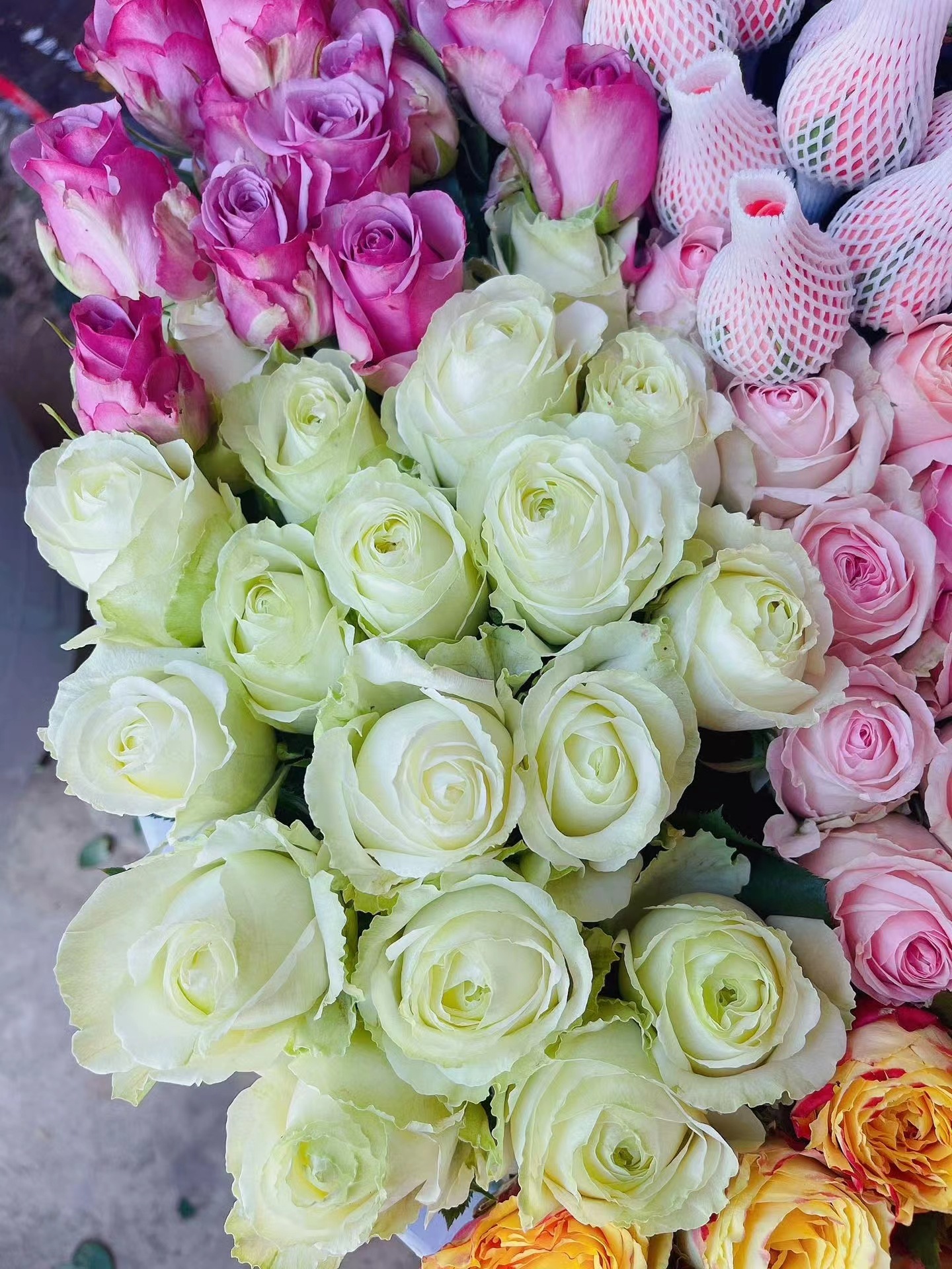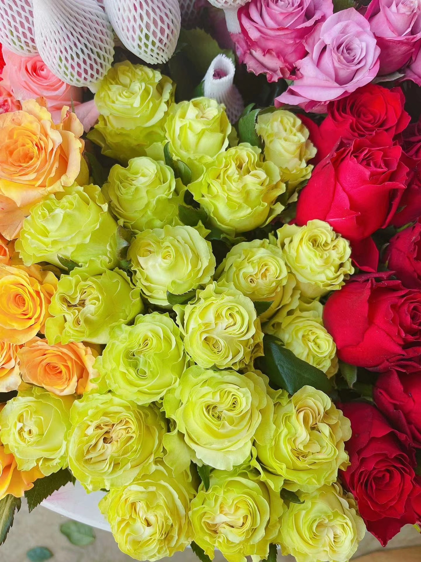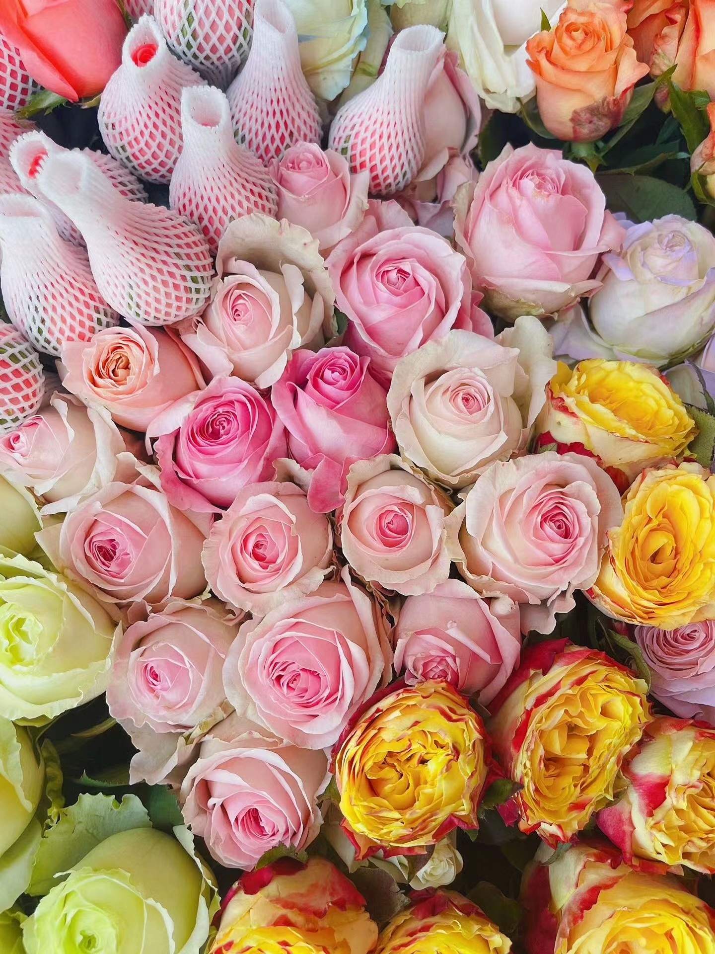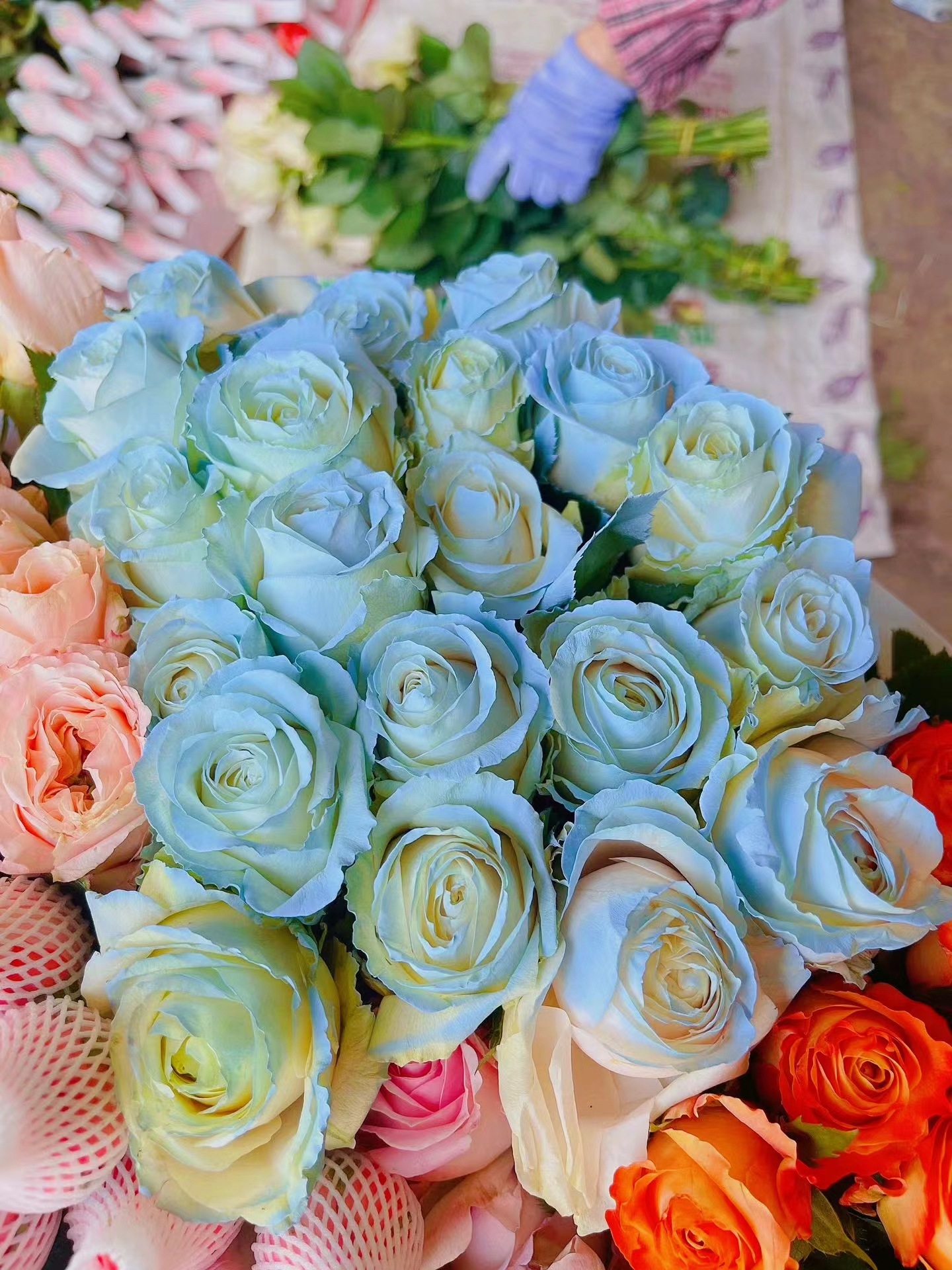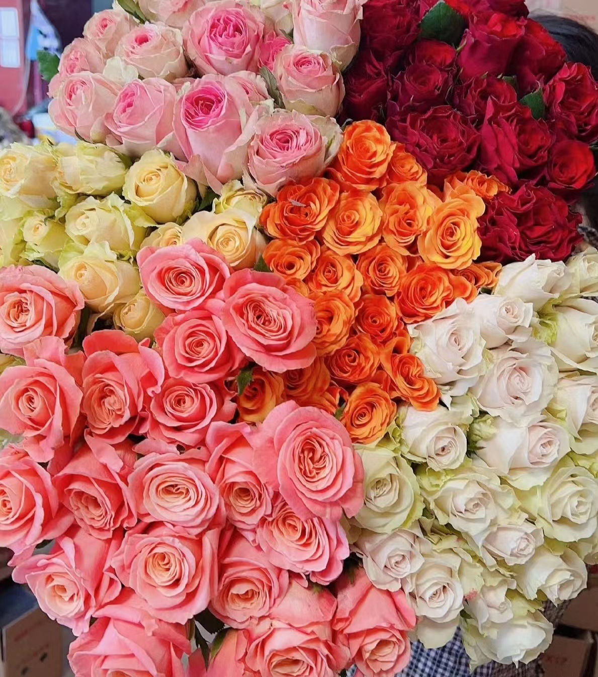 Розы класса C — случайный выбор; Шампанское; розовая роза; Плато красное; Королла; белая роза; мелкий лед синий; Черный рыцарь; Версаль; Кабу; г-жа Чжу; любимый