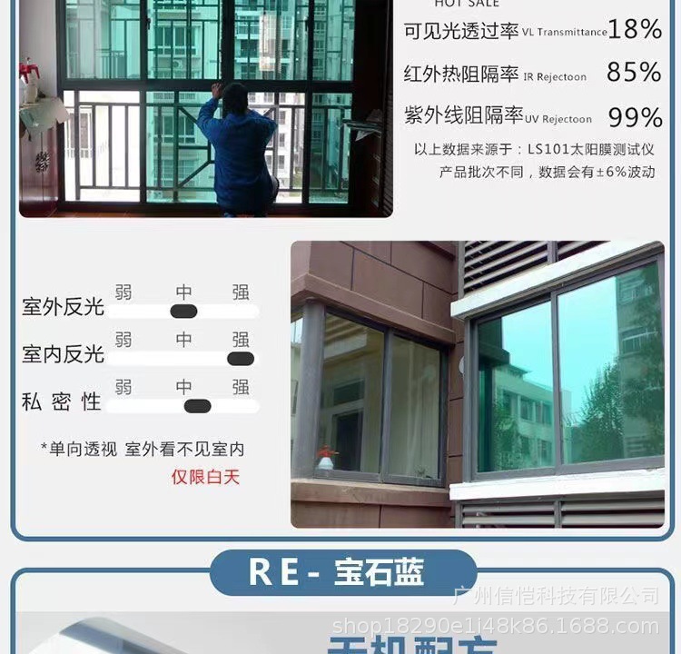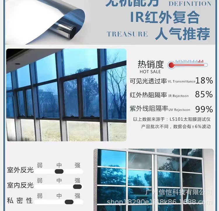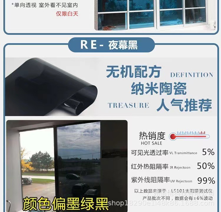 Оптовая стеклянная теплоизоляционная пленка Окно Солнцезащитный крем затенение односторонняя перспектива офисная анти-глянцевая односторонняя нано-теплоизоляционная пленка