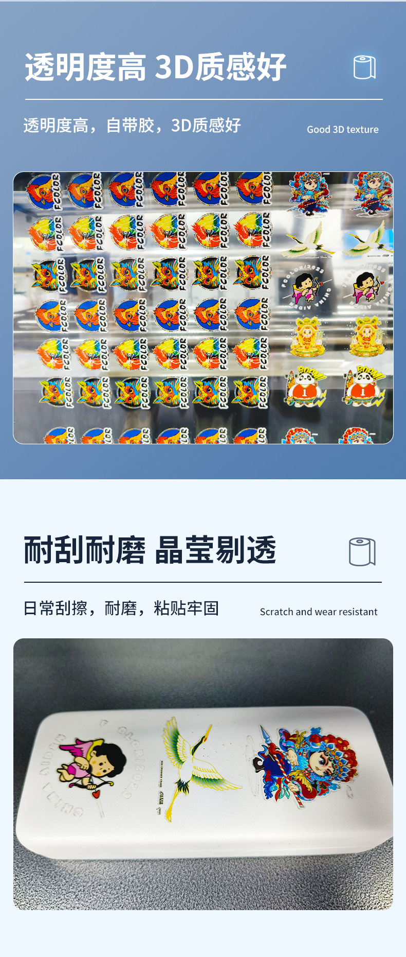 Материал для этикеток из кристаллической пленки А3, рулонная пленка для холодного переноса с текстом, отрывная пленка, а также этикетки А4 с УФ-печатью, низкотемпературная кристаллическая печать на пленке АВ.