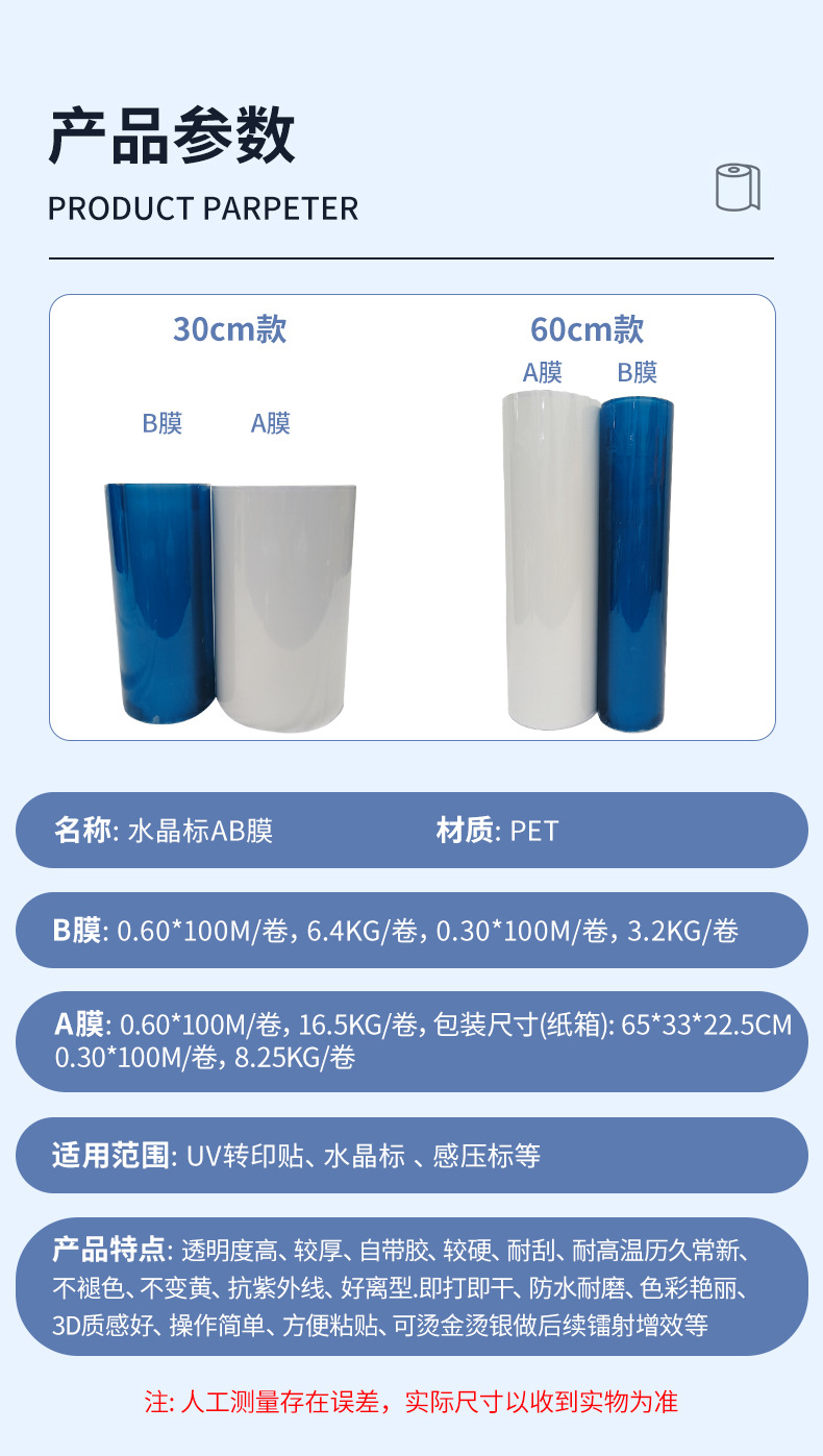 30cm * 100M Кристаллическая стандартная пленка переноса прозрачная (фильм A + фильм b)
