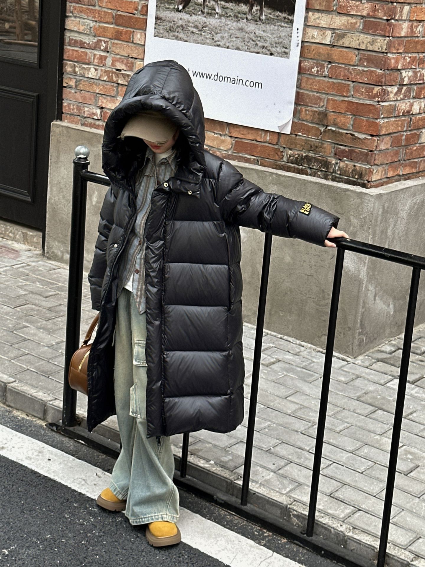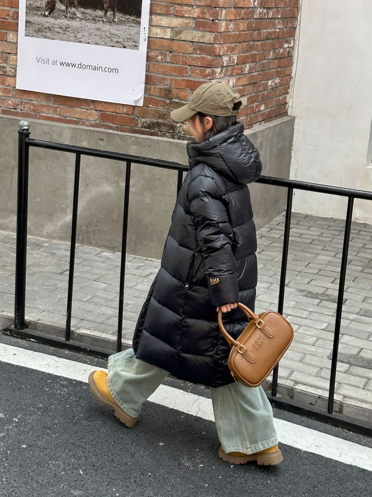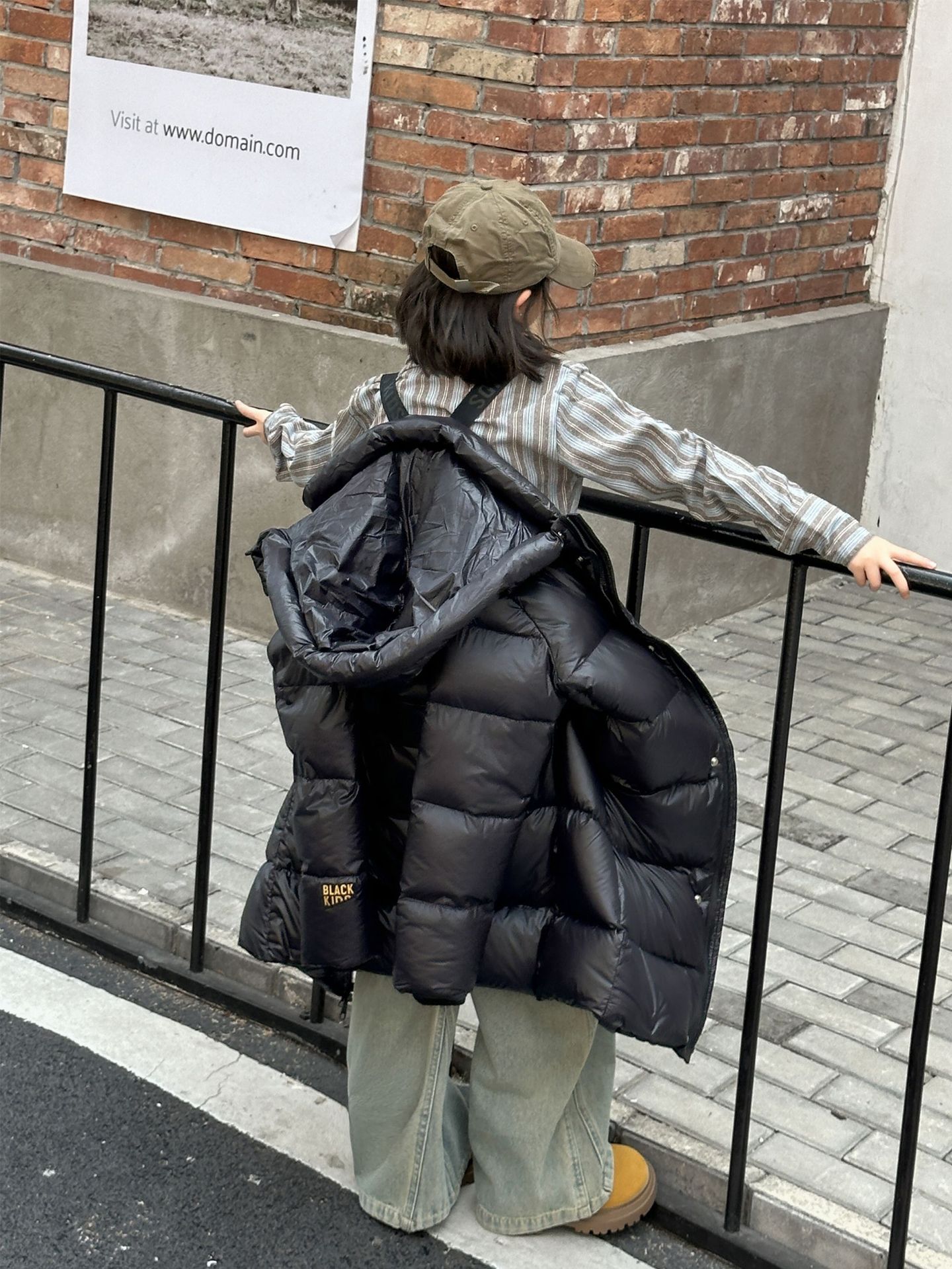 Детский пуховик, черный и золотой, средней длины, утолщенный с золотой подкладкой, детское пальто с капюшоном, утолщенное и теплое.